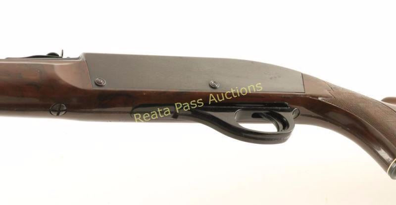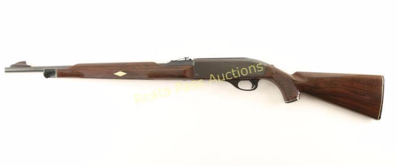 Tube-fed semi-automatic sporting rifle chambered in .22 Long Rifle, circa 1959-1968. Features a blued finish, 19.5" barrel, ramped blade front sight, adjustable rear sporting sight, serrated trigger, integral scope rail on the receiver, sliding tang safety, tubular magazine and checkered brown nylon pistol grip shoulder stock. The charging handle has been replaced with a screw that has a metal jacket over the threads. Rifle retains approximately 65% of it's blued finish showing a large amount of light surface rust formed on the receiver with a lighter concentration of light surface rust on the barrel along with some wear. Action is smooth, bore is excellent and nylon stock is good+ showing moderate scuffs/scratches. Condition is good+. ***C&R Firearm*** ***Modern Firearm***