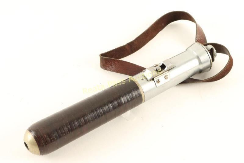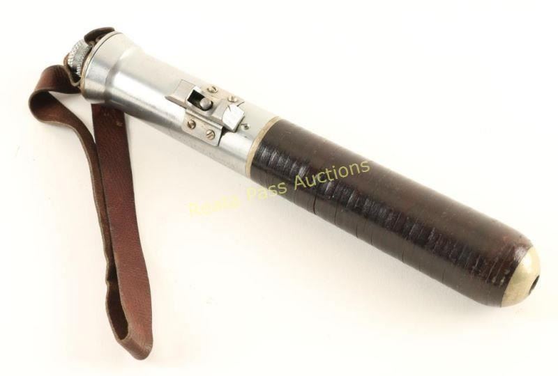 Federal Laboratories metal construction with leather wrapped club and leather strap. Pat. Sept 15, 1925, Dec. 15, 1925 and Dec. 29, 1925. 'Federal Laboratories Inc. Pittsburgh' stamped on the end of handle.