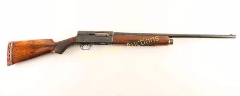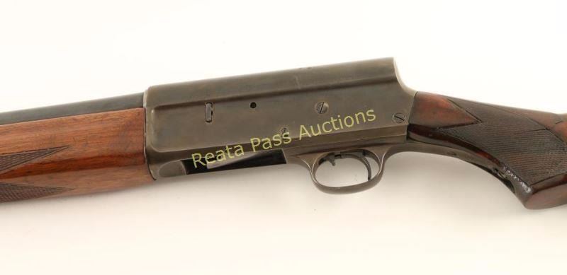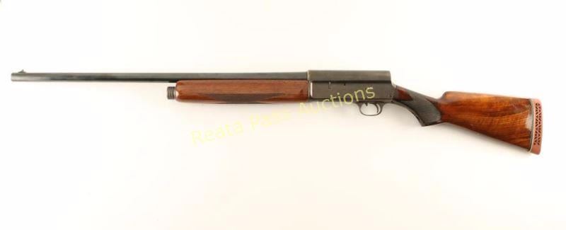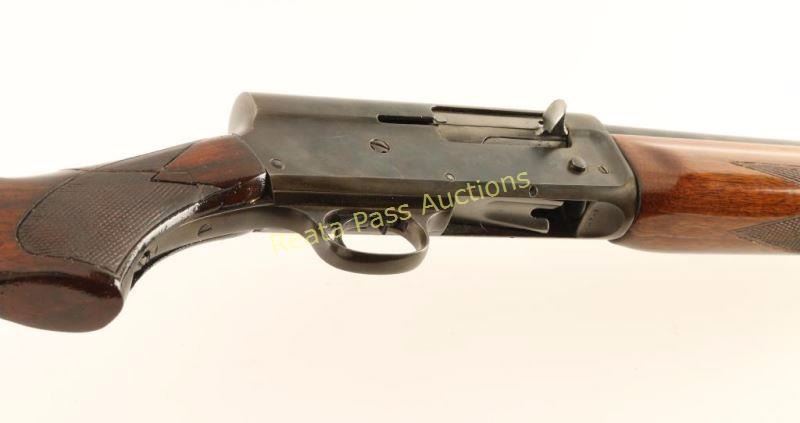 Blued, semi-automatic, tube magazine fed shotgun with a 26.25" barrel, fixed modified choke, single bead front sight, refinished checkered forend, repaired and refinished checkered buttstock and a White Line recoil pad. Bluing on the barrel appears to have been polished and re-blued. Receiver has faded to mottled shades of grey. Bore has pitting. Action works well. Forend has been revarnished and there may be a repaired crack on the bottom at the receiver. The butt has a repaired major crack in the wrist that almost broke the butt in two. The stock outside of the checkered panels has been varnished. The recoil pad is worn but still well-fitted and soft. Condition is poor to fair. *Modern Firearm*