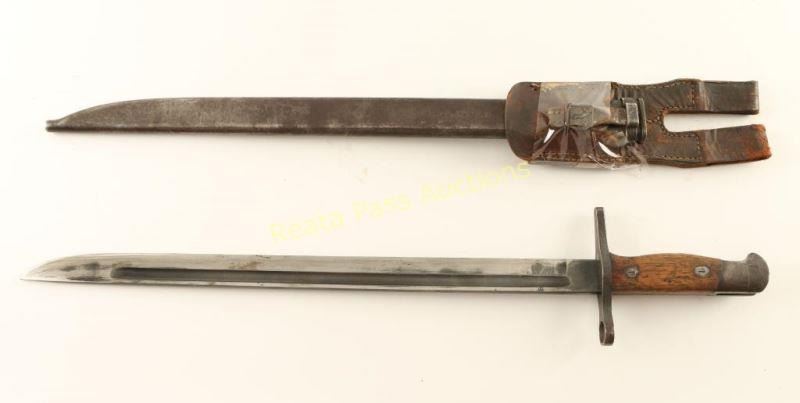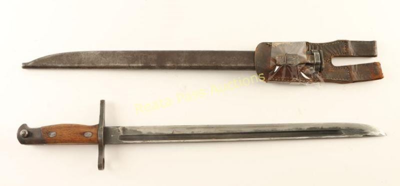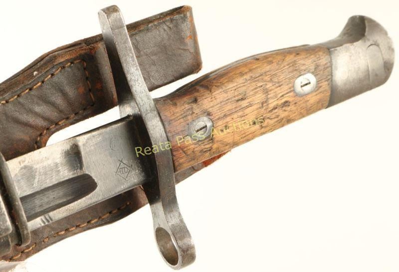 #7 Serial #31656, All Metal Construction 20" Overall With A 15" Blade And Metal Sheath And Hanger. Leather hanger is damaged.