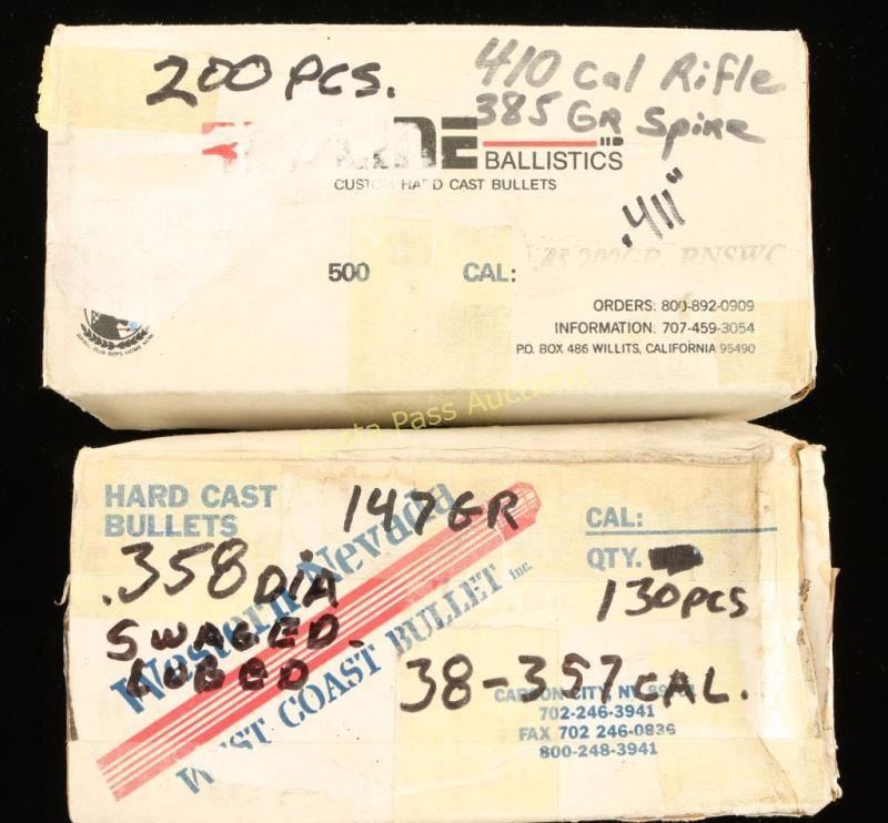 .357 tc 147 Gr swaged approx 130 pcs and 41 Cal rifle 385 Gr spire .410 dia. approx. 200 pcs.