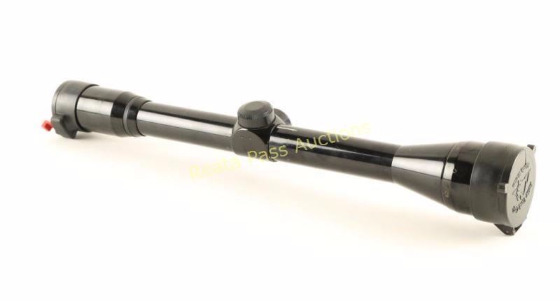 Quality fixed power scope with glossy black finish and flip-up covers. Condition is very good.