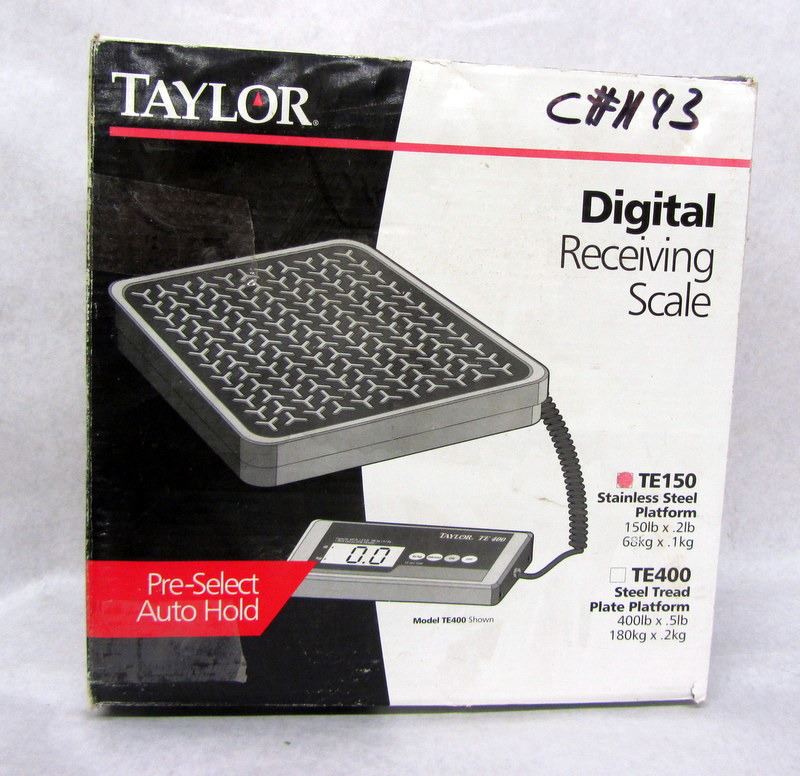 TAYLOR TE150 DIGITAL RECEIVING SCALE. WITH ORIGNAL BOX. IS DIRTY.