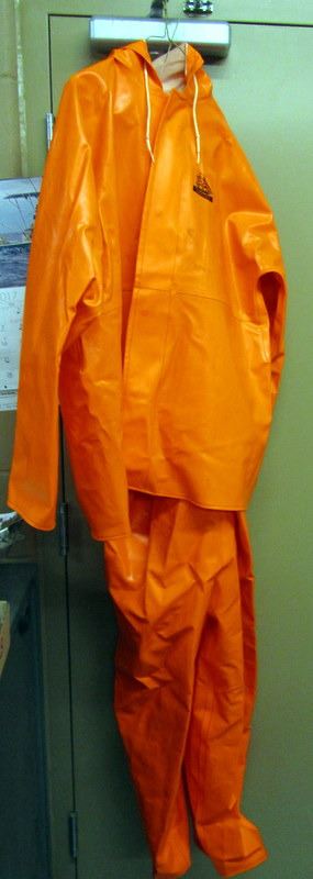 2 SLIP-ON BUTTPADS. BLAZE ORANGE RAINCOAT, SIZE LARGE