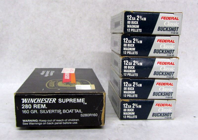 50 RDS FEDERAL 12 GA. 2 3/4" BUCKSHOT. 20 RDS WINCHESTER 280 REM AMMO.