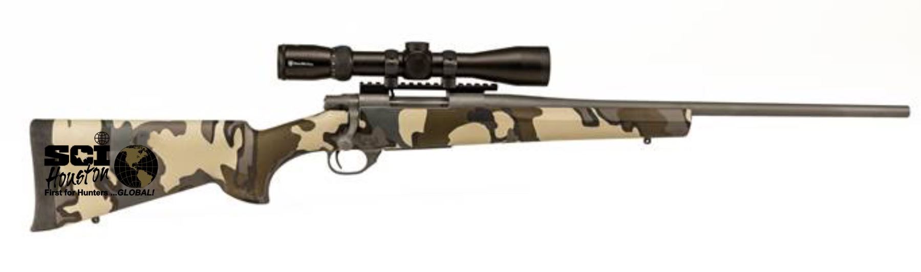 This rifle from LEGACY SPORTS INTERNATIONAL features a Kuiu® camo on Hogue® pillar-bedded stock & recoil pad with Cerakote™ Tactical Gray finish on barrel & action AND its emblazoned with the SCI Houston First for Hunters … GLOBAL! Logo! www.legacysports.com/catalog/howa/howa-kuiu-rifle