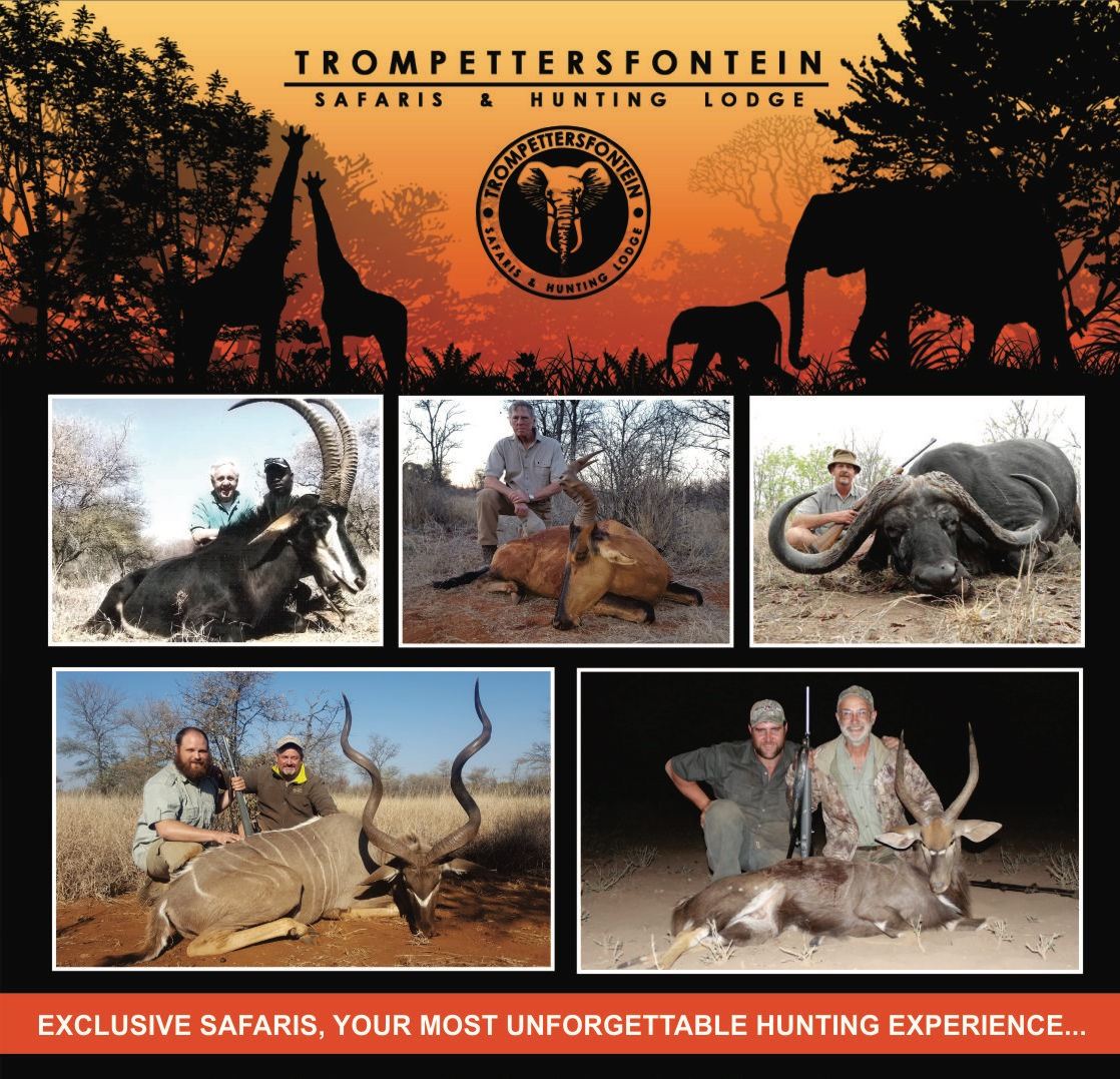 Returning donor Marius Moolman brings us this SIX (6)-DAY/FIVE (5)-NIGHT (5 HUNTING DAYS) ALL INCLUSIVE PLAINS GAME SAFARI for ONE (1) HUNTER with TROPHY FEES FOR ONE (1) EACH: WARTHOG, IMPALA, BLESBUCK and BLUE WILDEBEEST 1x1. Hunt in 2017-18 by rifle or bow and upgrade for additional species at the listed price when hunting, add days/hunters (300/day/hunter 1x1, 300/day/hunter 2x1) and observers (200/day/ea). June-September is recommended, with the hunting area located in the bushveld in the Limpopo region. Accommodations are luxury lodges and chalets with ensuite bathrooms and all the modern amenities. Trompettersfontein hunts a variety of with concessions in excess of 25000 acres close to the lodge depending on the type and size of trophy animals the client wants to hunt, including big game safaris along with the plains game. They also hunt buffalo and lion in South Africa as well as buffalo, lion and elephant in Zimbabwe. All of this is available on upgrade depending on what you want to hunt and your preferences. They also have a wide range of rifles to choose from in case you don’t want to bring your guns. They also cater to bowhunting and have excellent blinds over waterholes and feeding areas where the success rates are very high. In short, Trompettersfontein will do their utmost to make sure your comforts and requirements are taken care of no matter your game of choice and method of hunt. They also guarantee that the hunting and trophies are obtained with the highest standards of fair chase hunting. Includes: trophy fees for one (1) each warthog, impala, blesbuck and blue wildebeest, permits and daily rates for six (6) days, transportation during the hunt, services of PH, trackers and skinners, field preparation, meals and accommodations during the hunt, transfers from OR Tambo Airport, daily laundry service, transport of trophies to taxidermist or dip and pack company. Excludes: international airfare to/from OR Tambo Airport, alcohol, taxidermy fees, dipping and crating, telephone/Internet services, accommodations and meals before or after the hunt, tips, gratuities and weapon permit ($300-350). Please check their website for details and any weapon/ammo exclusions. This is a 100% donation to the Chapter. www.trompettersfontein.com