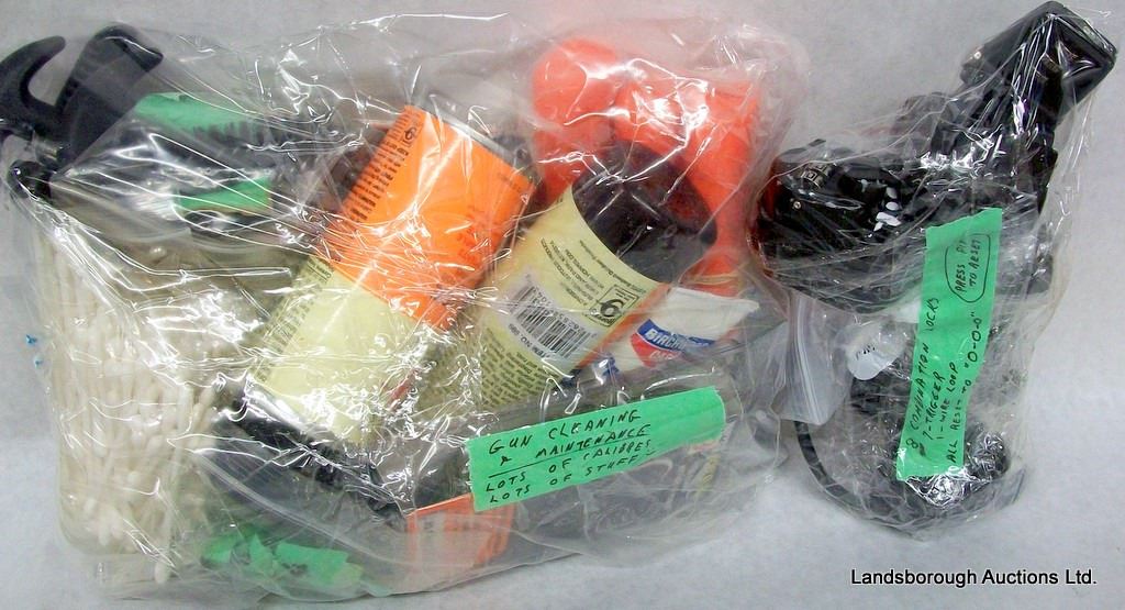 Lot 107 8 COMBINATION LOCKS AND GUN CLEANING SUPPLIES