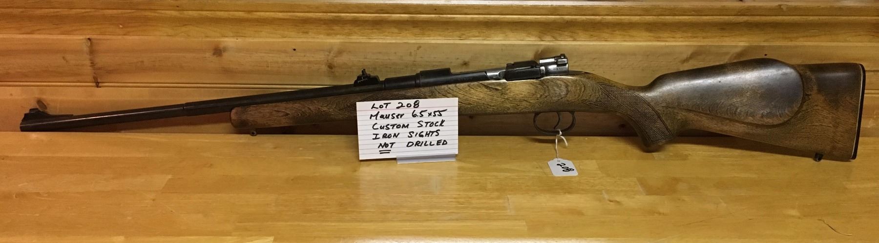 MAUSER 6.5X55 SWEDE, S/N 77564, BOLT, WOOD EXCELLENT, CUSTOM STOCK, W/ IRON SIGHTS, BLUING VERY GOOD, BORE GOOD
