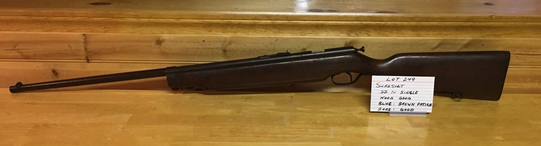 SURESHOT, .22LR SINGLE SHOT, S/N NONE, BOLT, WOOD GOOD, BLUING BROWN PATINA, BORE GOOD