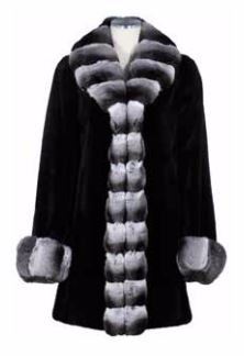 33” Sheared Mink Stroller with Chinchilla Cross Cut Shawl Collar, Tuxedo & Turn Back Cuffs. Auction winner will choose what size they would like (8-20) and it will be shipped to address provided. Provided by Alaska Fur Gallery in Anchorage, AK.