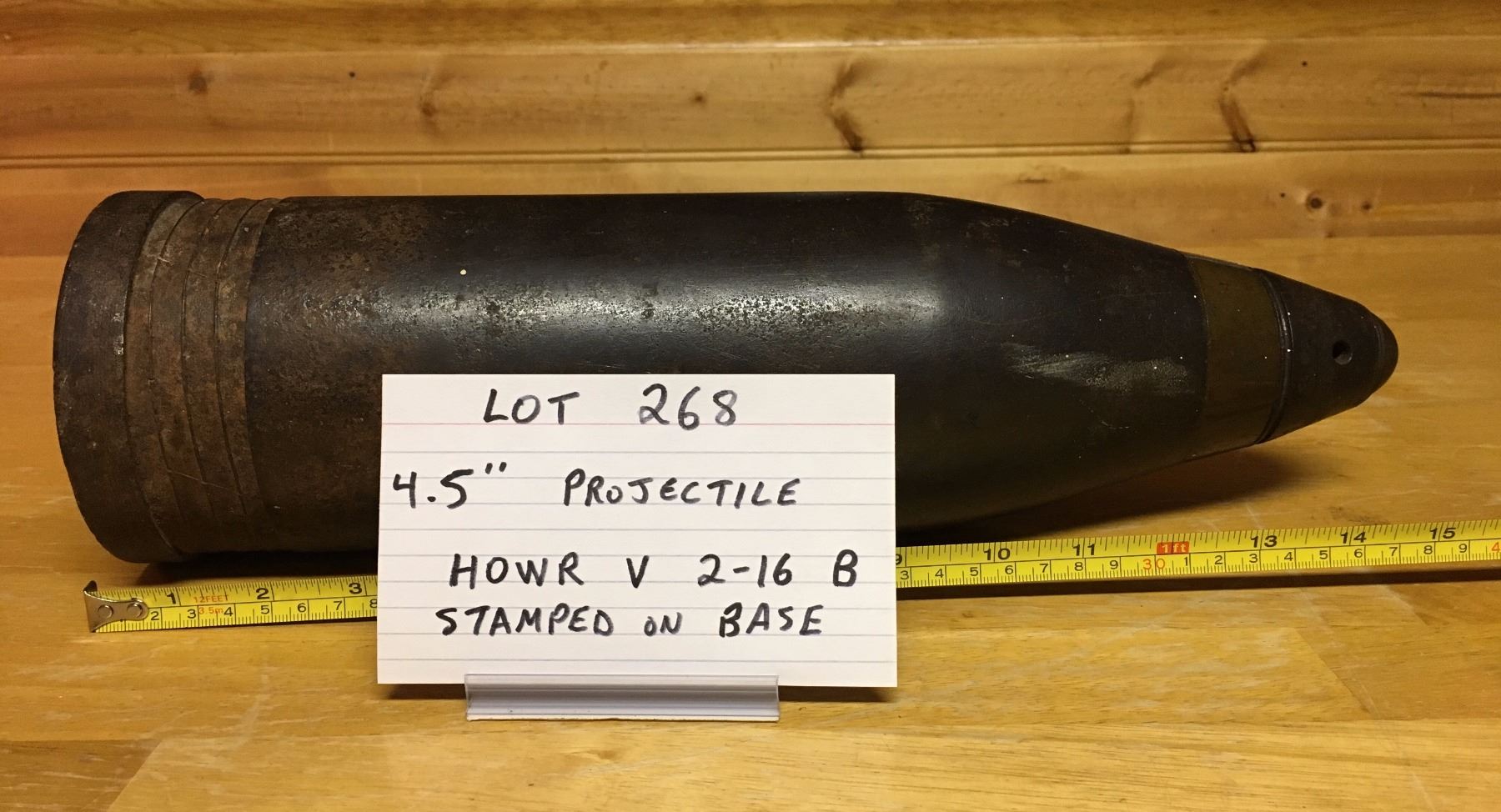 4.5" PROJECTILE, HOWR V 2-16, NOTE/SHIPPING COST WILL BE HIGH DUE TO WEIGHT - 25.5 LBS
