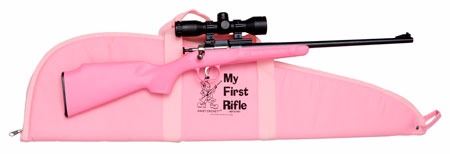 Crickett's Single Shot 22 LR rifle features a pink synthetic stock,