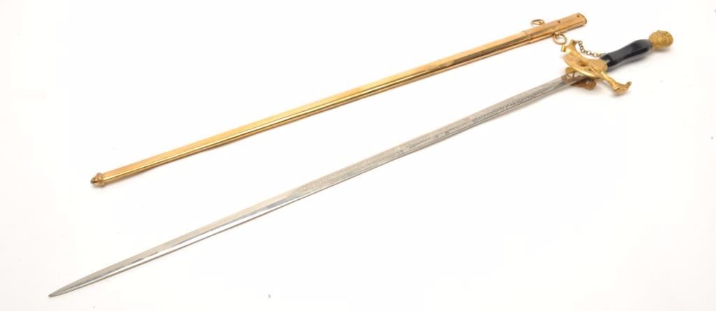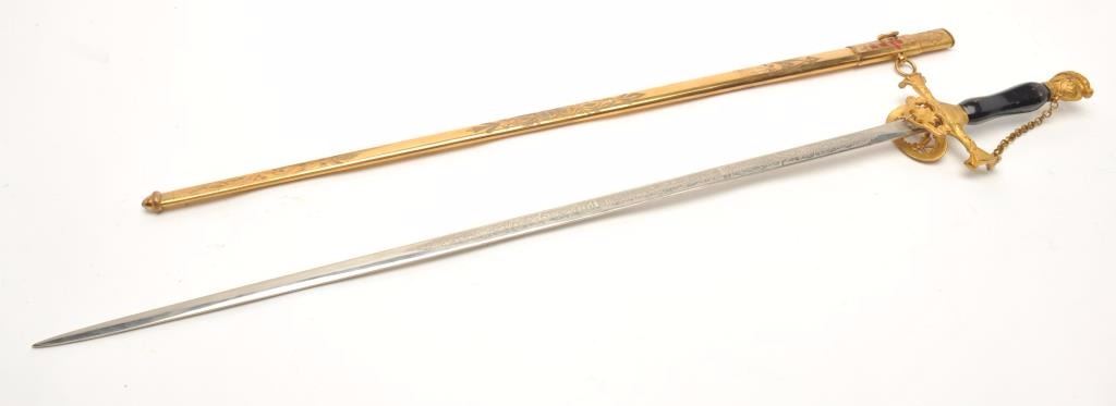 Lot 4 Ceremonial Lodge style sword. The sword is in good overall condition with a 24” blade engraved, “