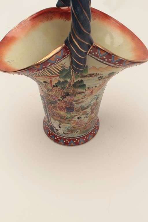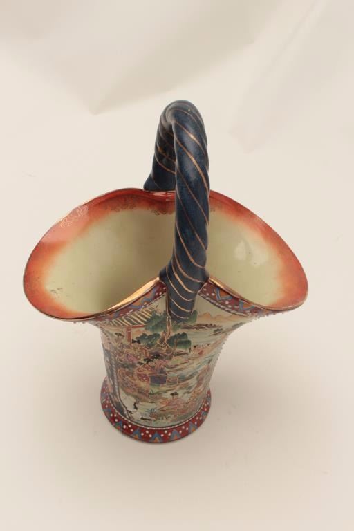Chinese porcelain basket resembling Satsuma; ca. 1950s-60s; good condition and nice for floral arrangements; approximately 14” in height. Est.: $100-$200.