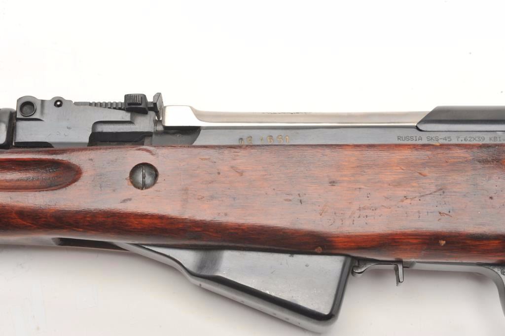 Lot 25 Russian SKS semi-auto rifle, 7.62 x 39 caliber, serial #OE1651. The rifle is in very good overall