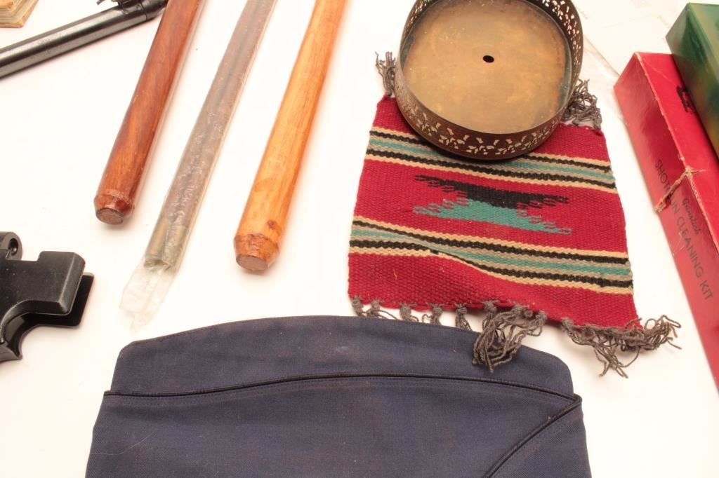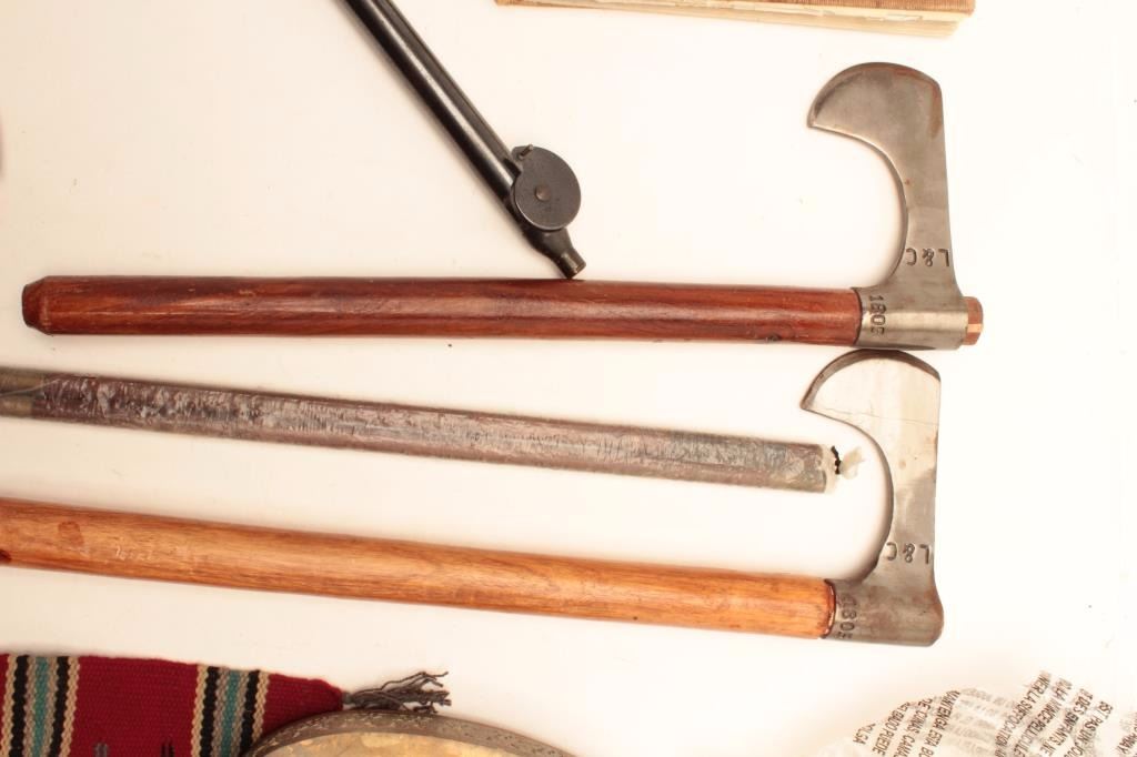 Lot of misc. collectibles including two 1805 Lewis & Clark Commemorative trade axes; a Daisy #300 scope in very good condition, a small Chimayo rug and other estate items from an old collection. Est.: $100-$200.