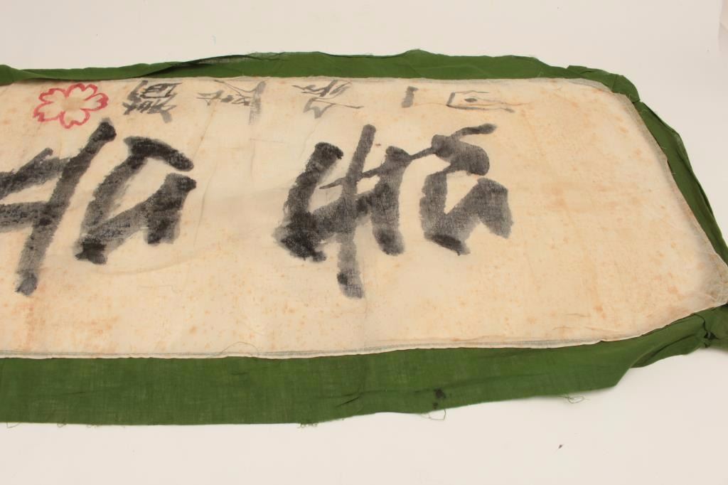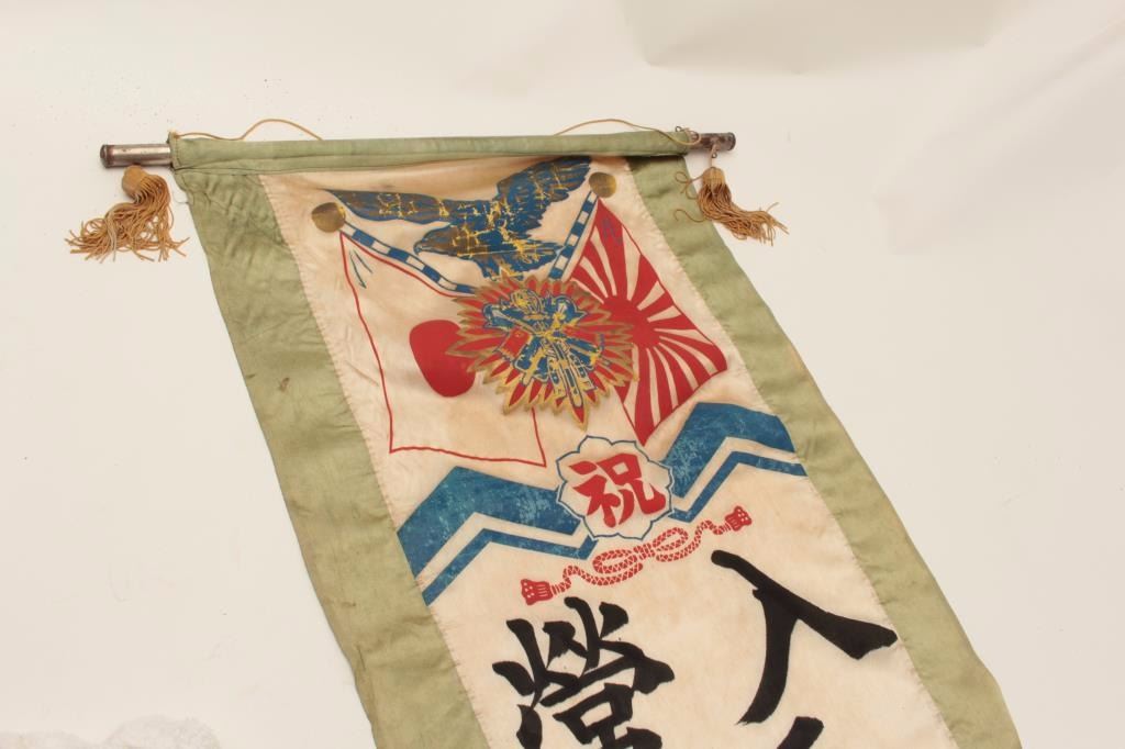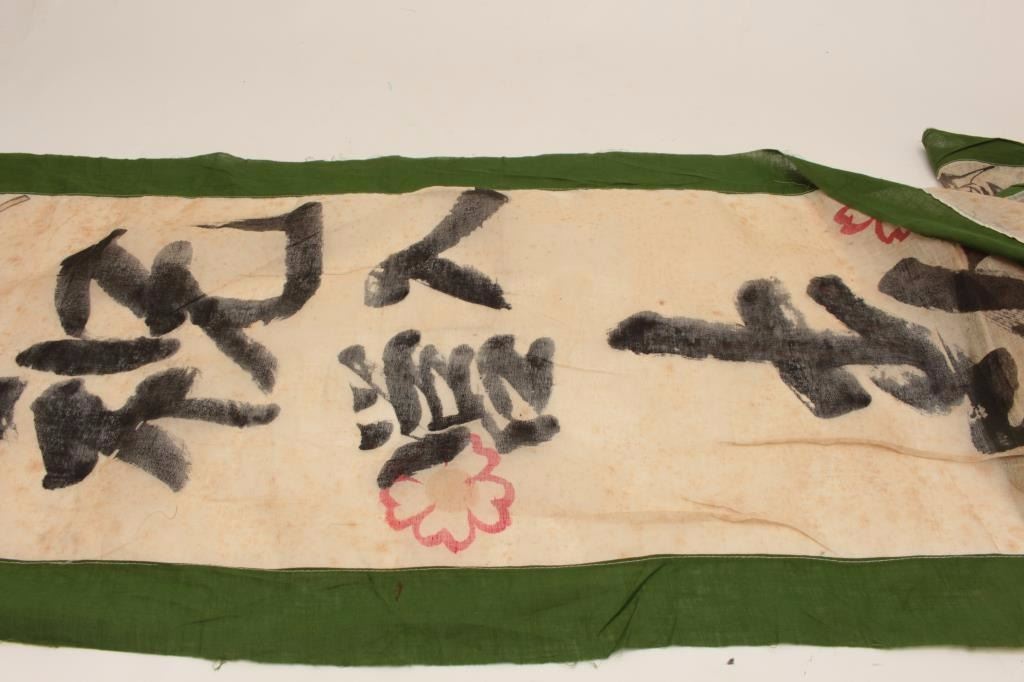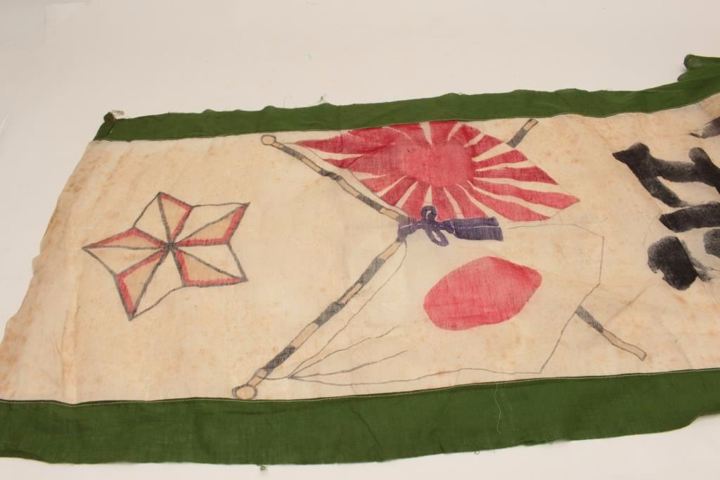 Lot 39 WW II Japanese banner with military motifs; approximately 10 feet overall. Est.: $100-$200