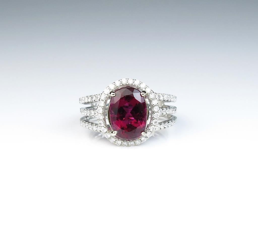 Lot 100c Spectacular ring featuring an extra fine Rubellite/ Tourmaline weighing approx. 3.00 carats, look