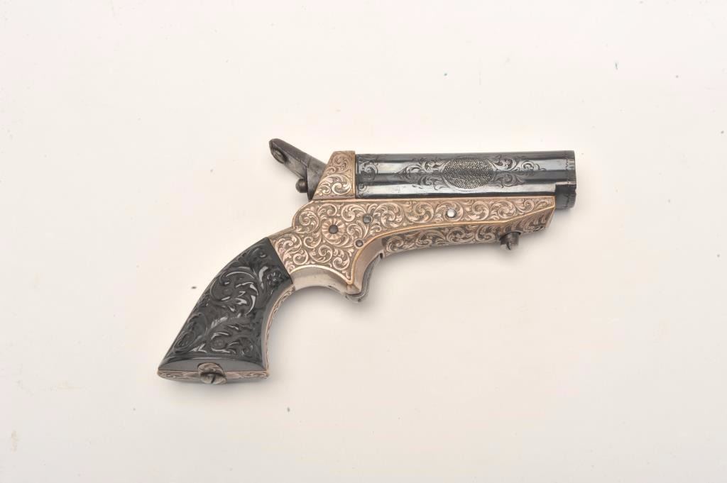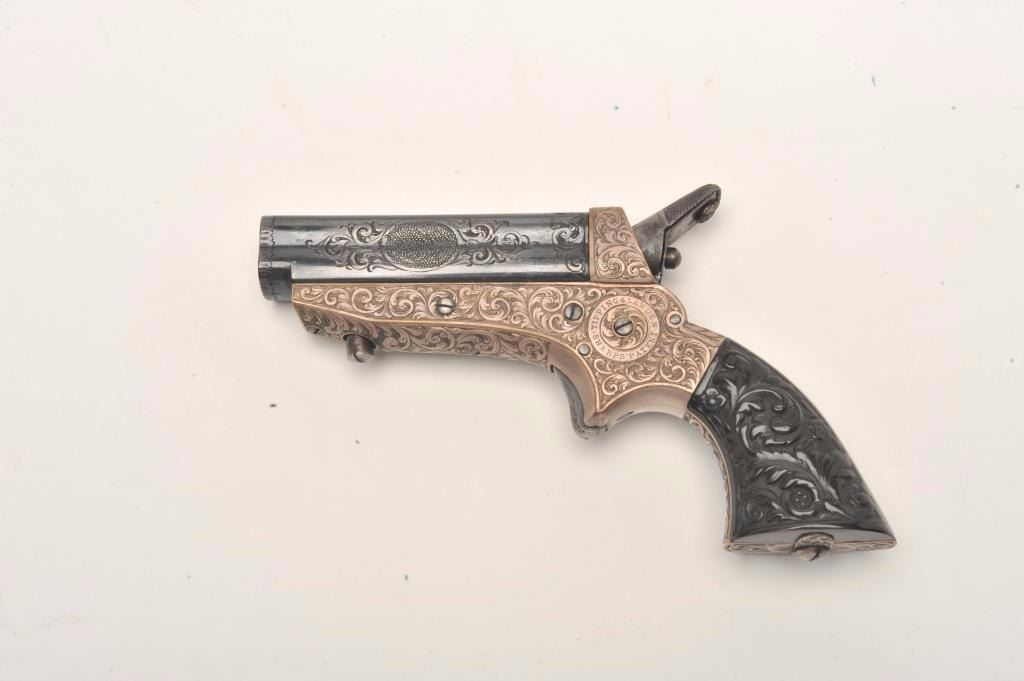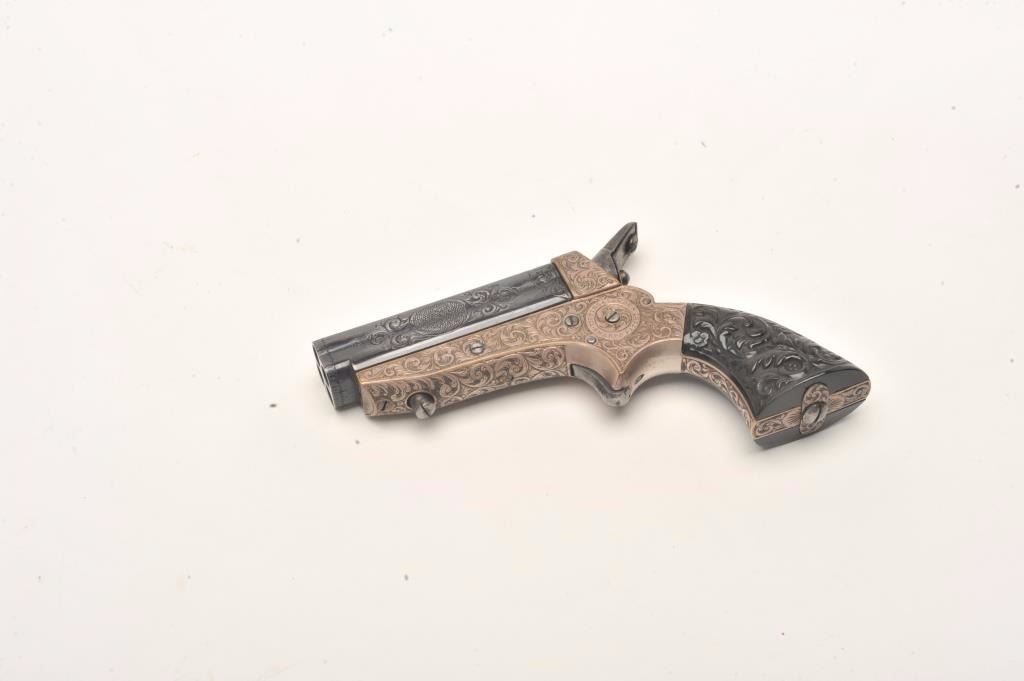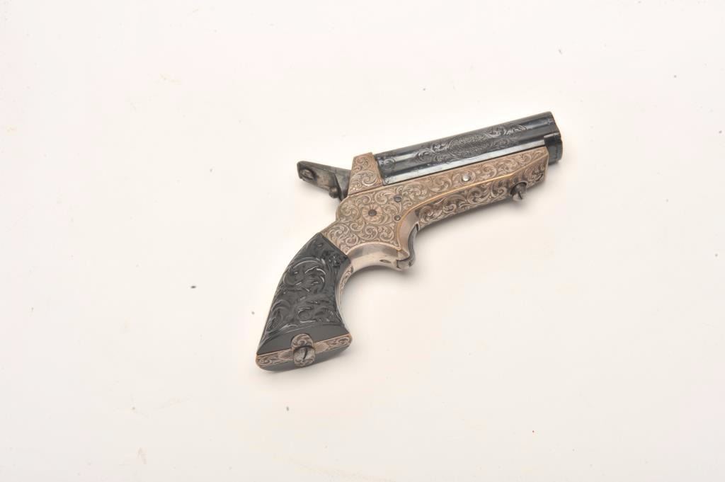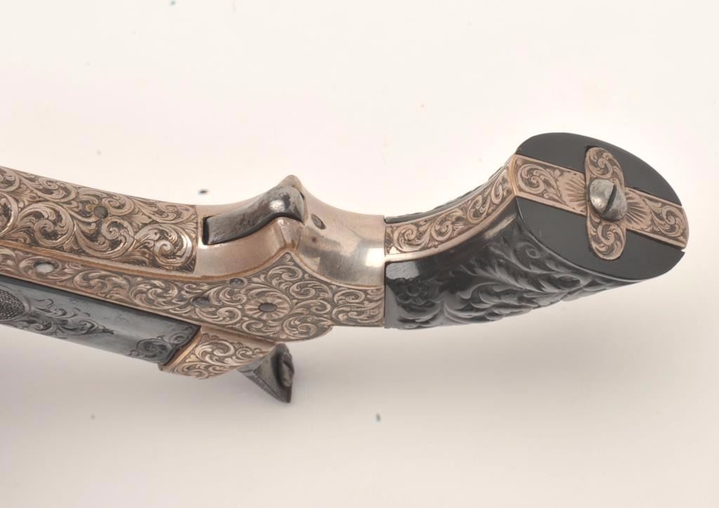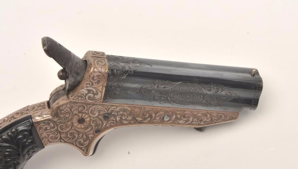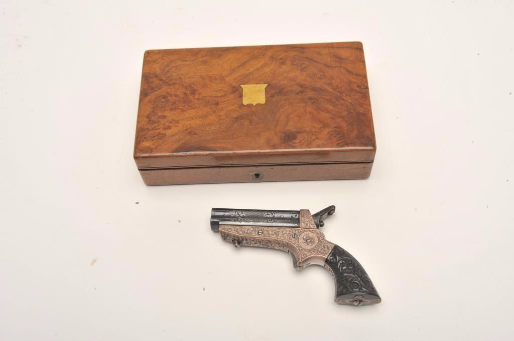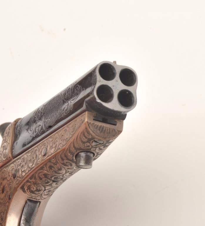 Lot 109 Tipping & Lawden Sharps four barrel derringer, finely and extensively scroll engraved, blued finis