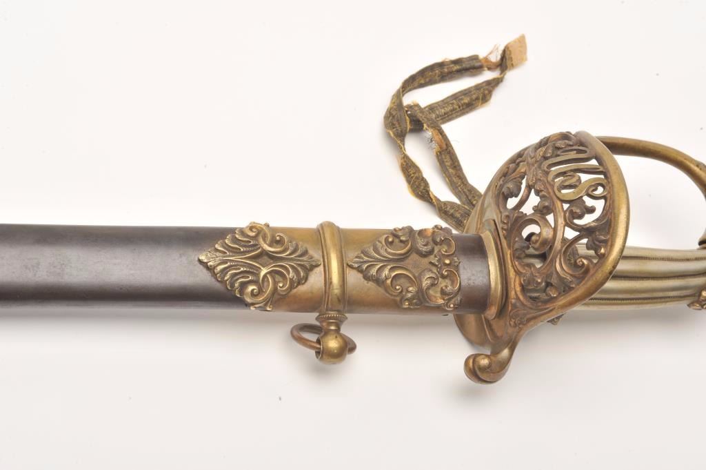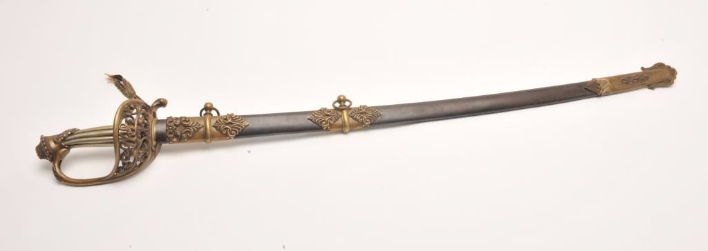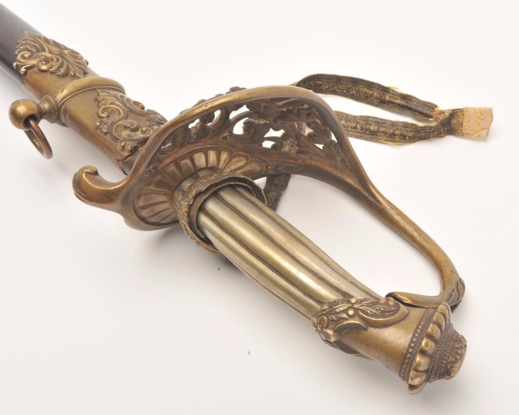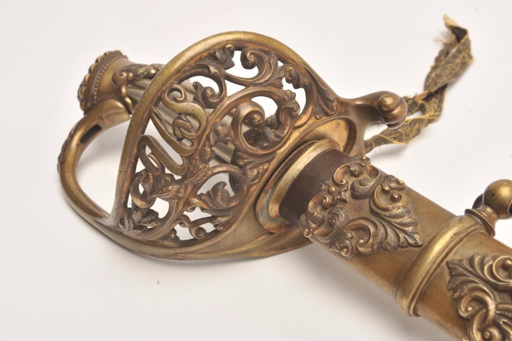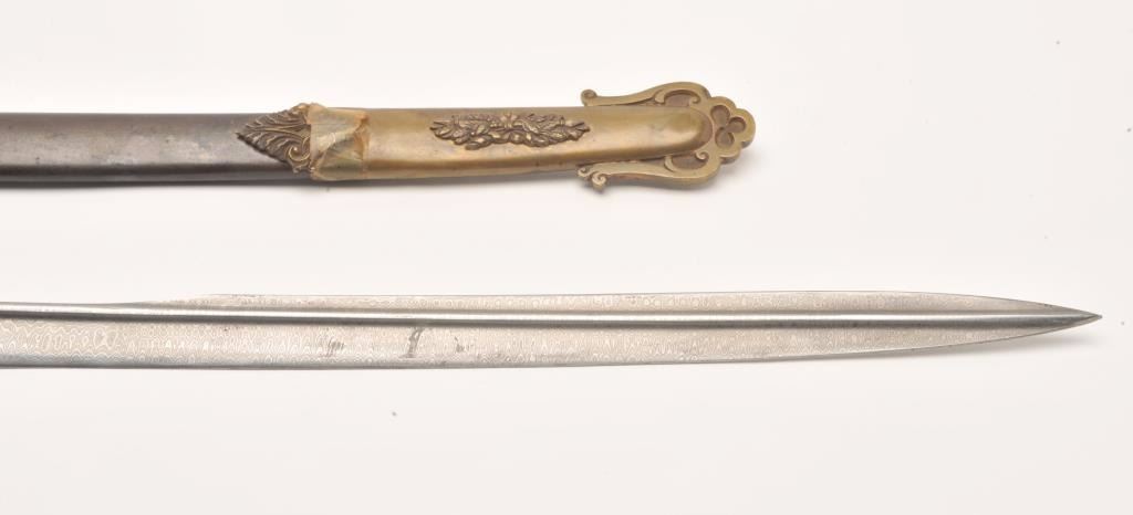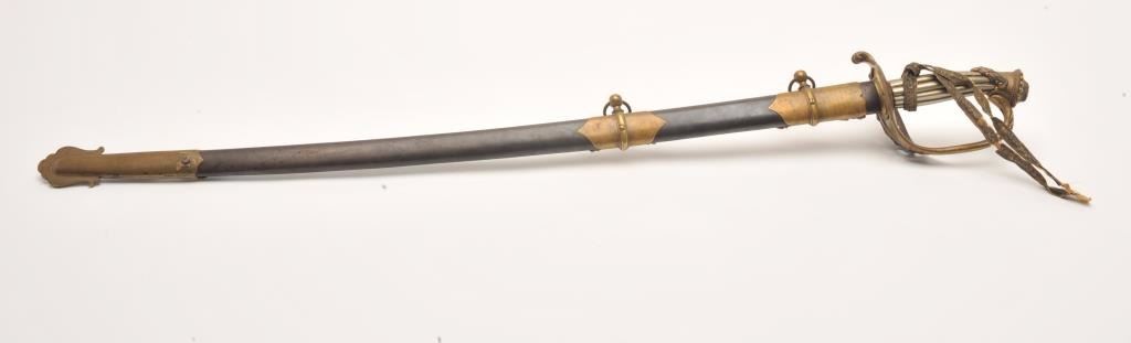 Lot 126 Presentation Civil War sword and scabbard inscribed on left side brass mount at throat “Presented