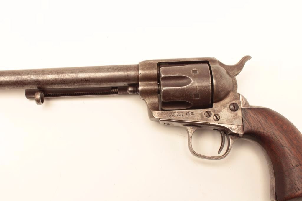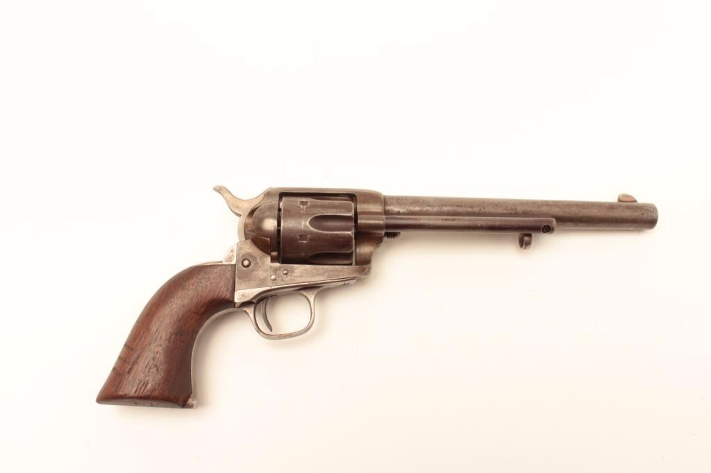 Lot 129 Colt SAA U.S. Ainsworth-inspected Cavalry Model revolver, .45 caliber, 7.5” barrel, grey/brown pat