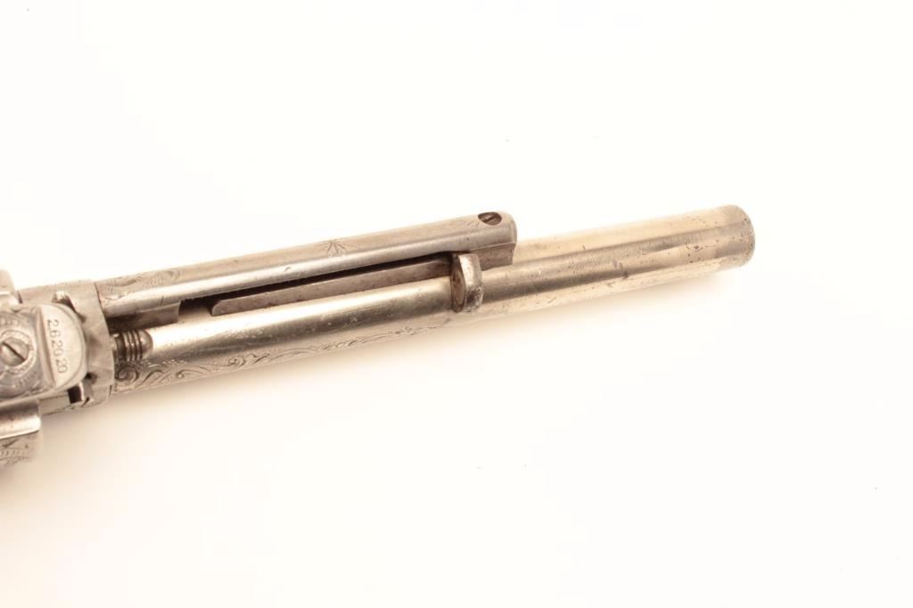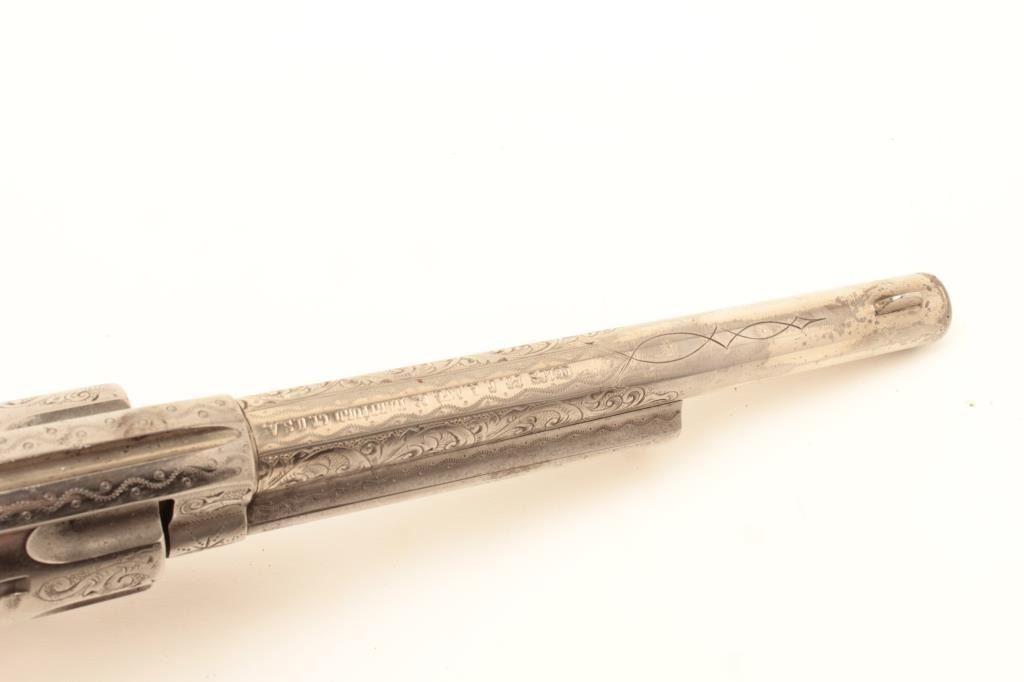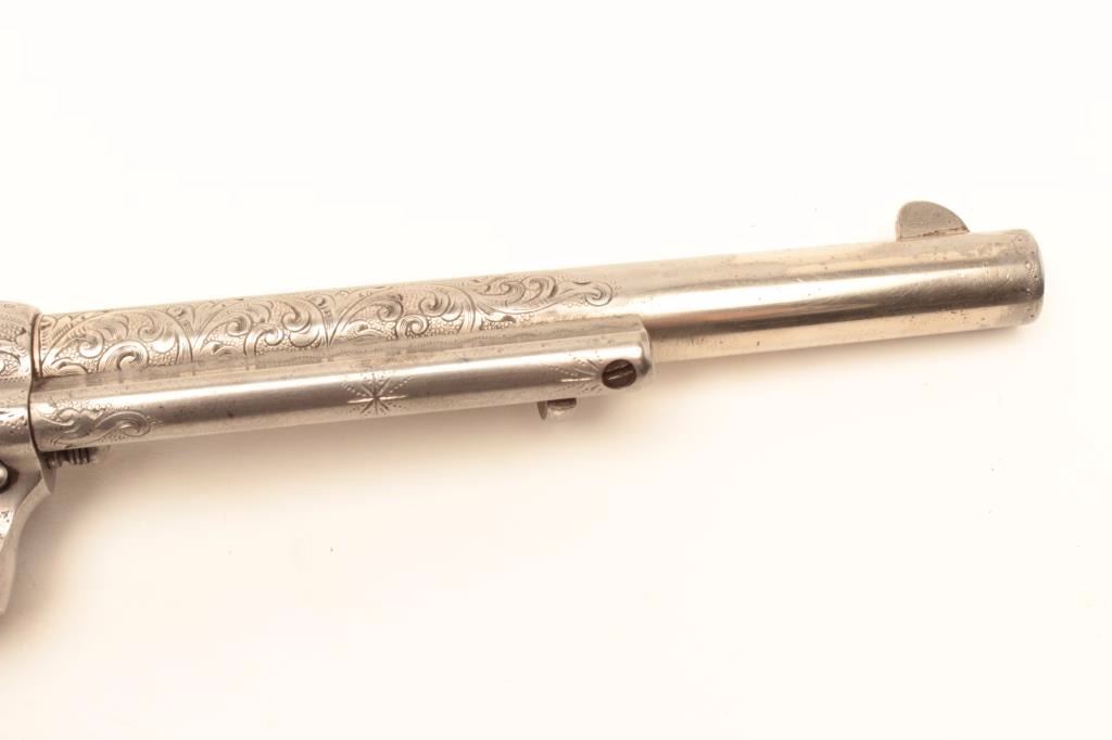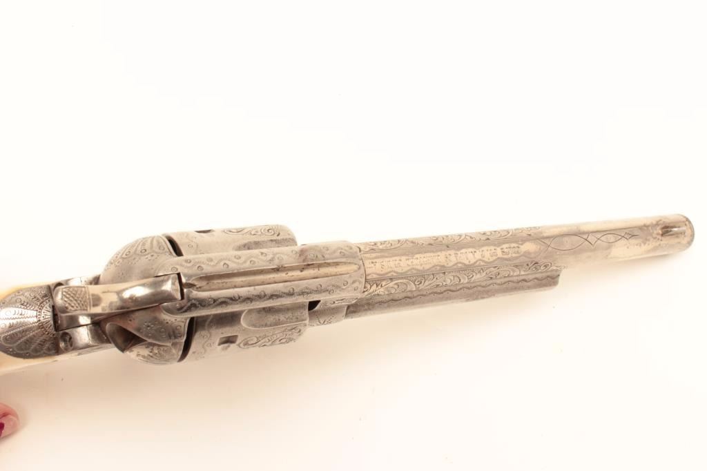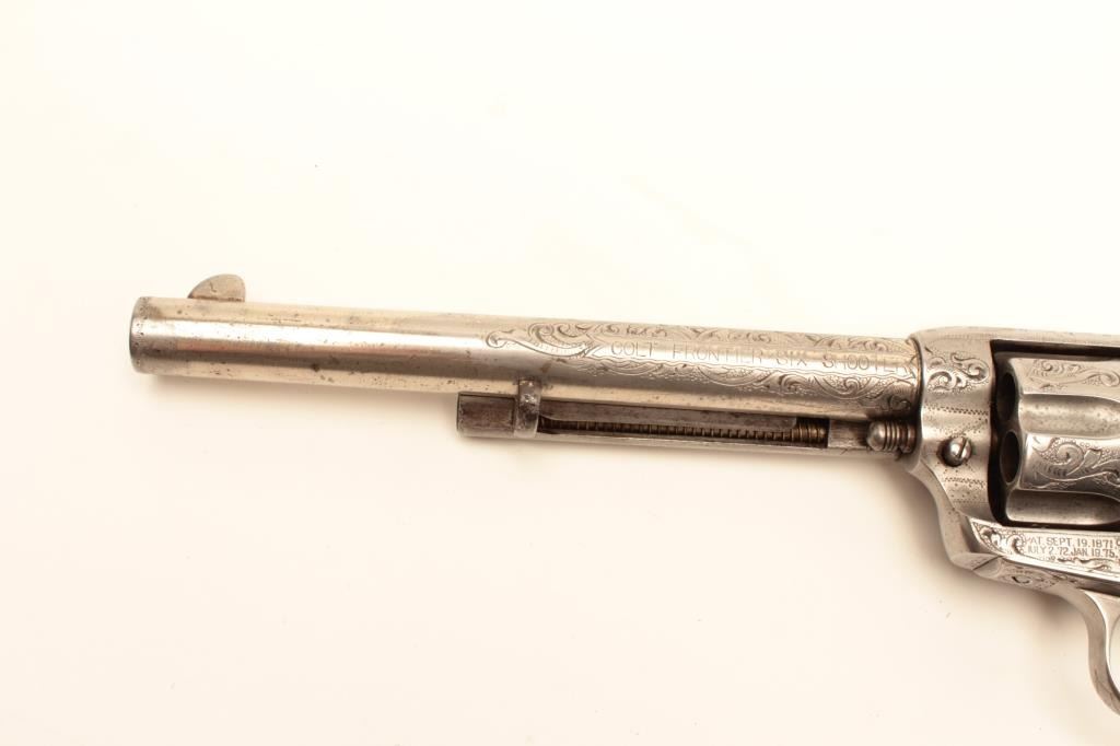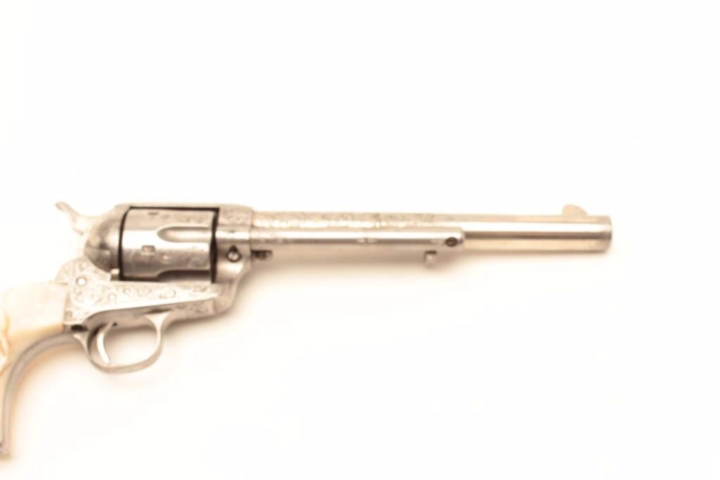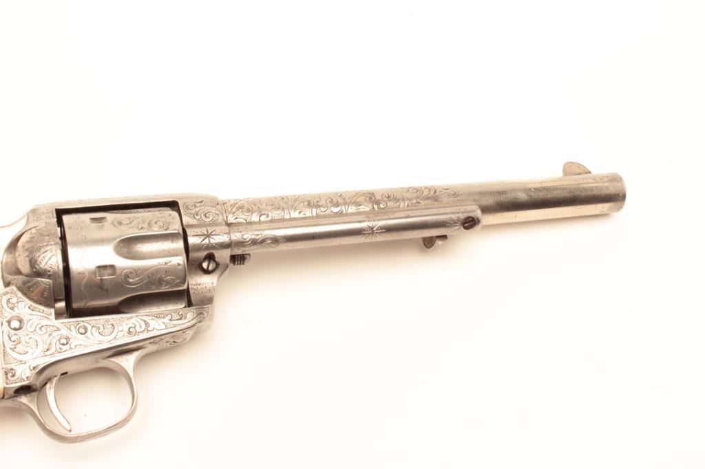 Lot 131a Colt Single Action Army revolver, .44-40 caliber, 7 ½” barrel, factory engraved, nickel finish, au