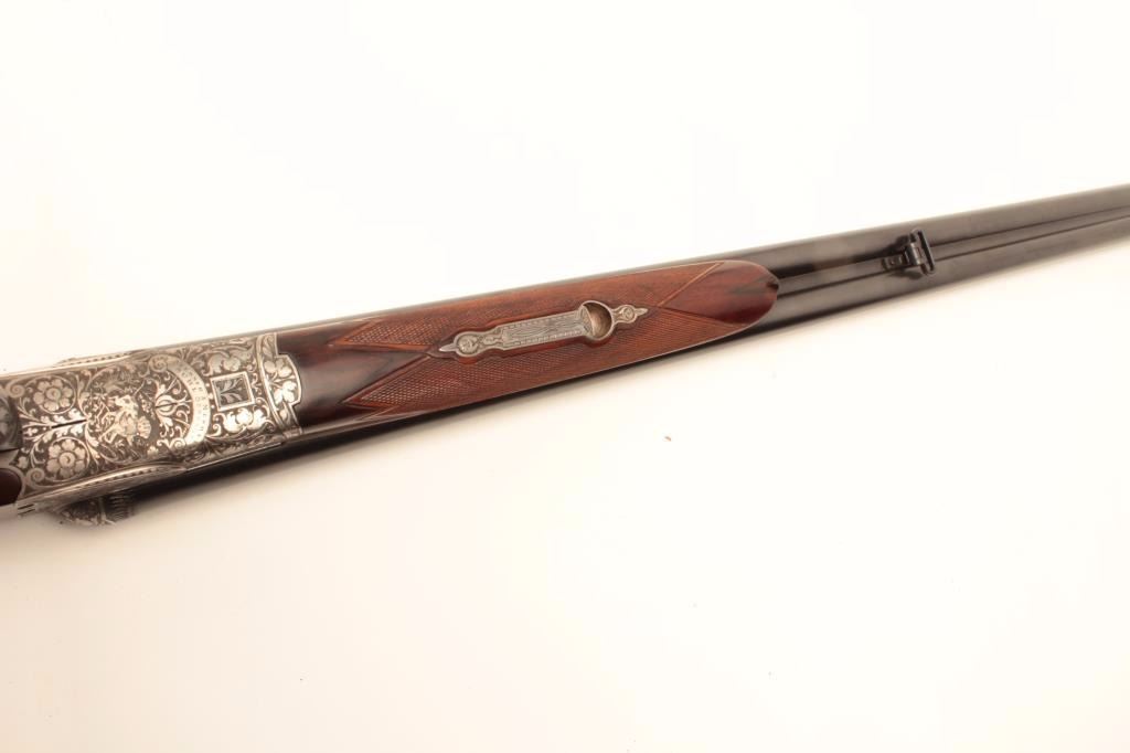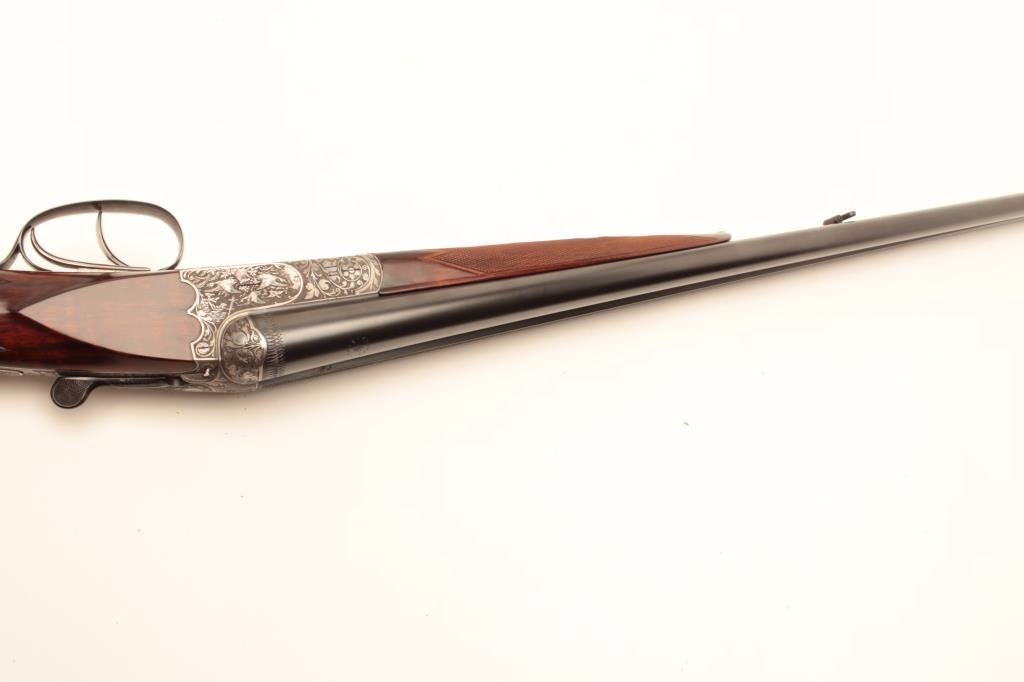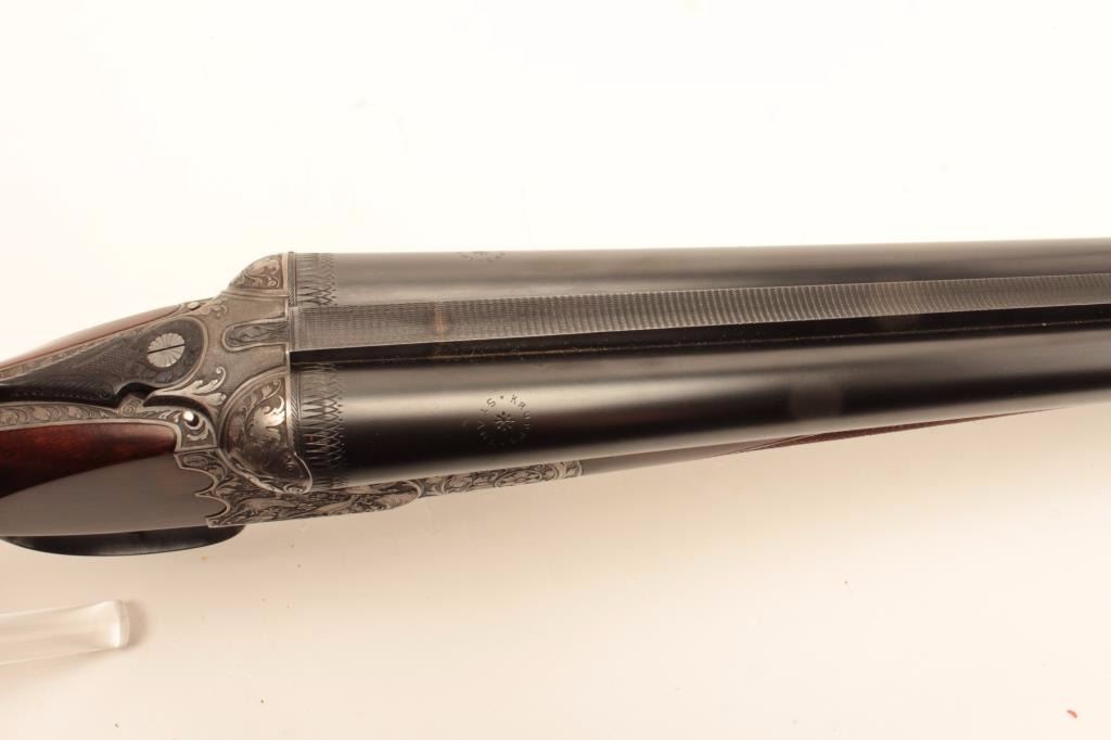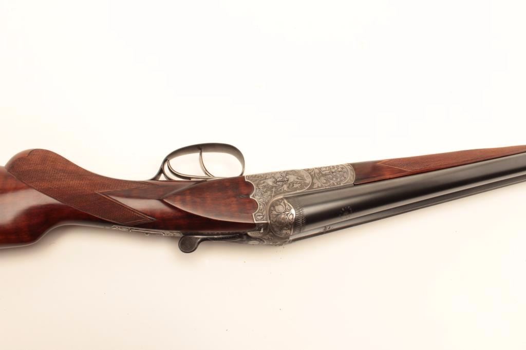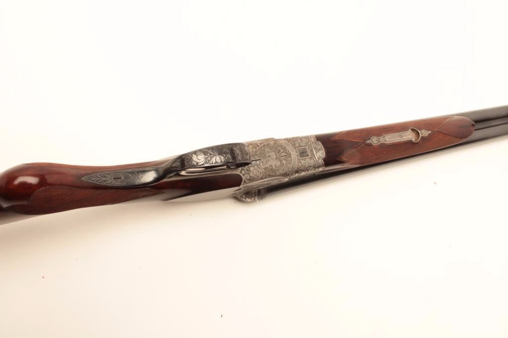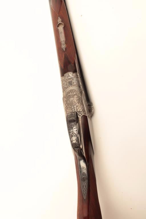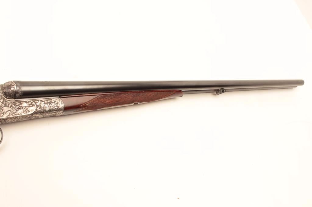Lot 134 Abesser & Merkel SxS hammerless engraved shotgun, 12 gauge, 12 gauge, 30” barrels, blued finish to