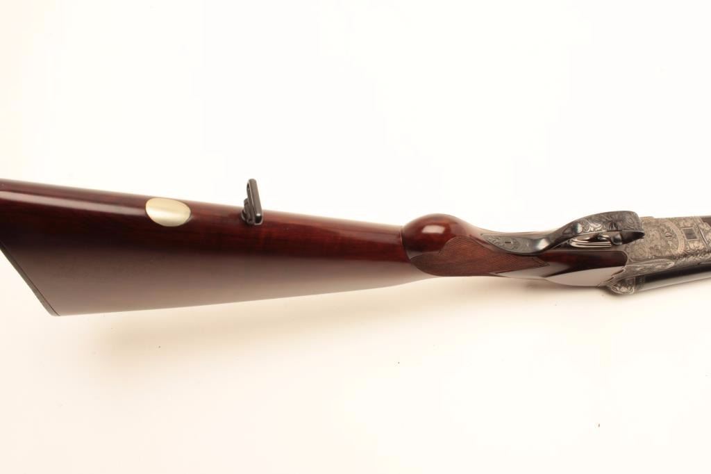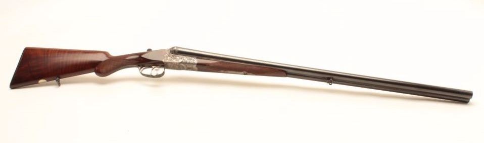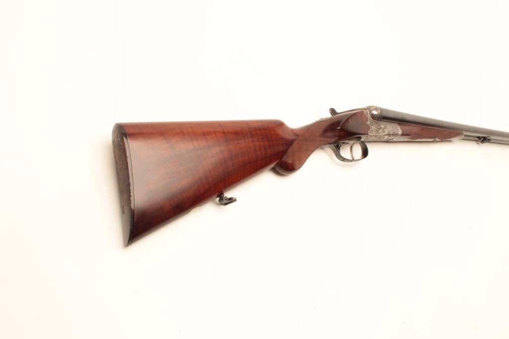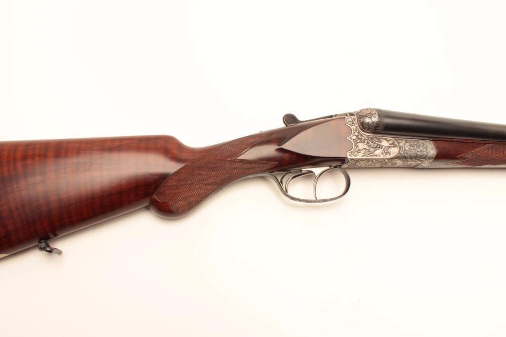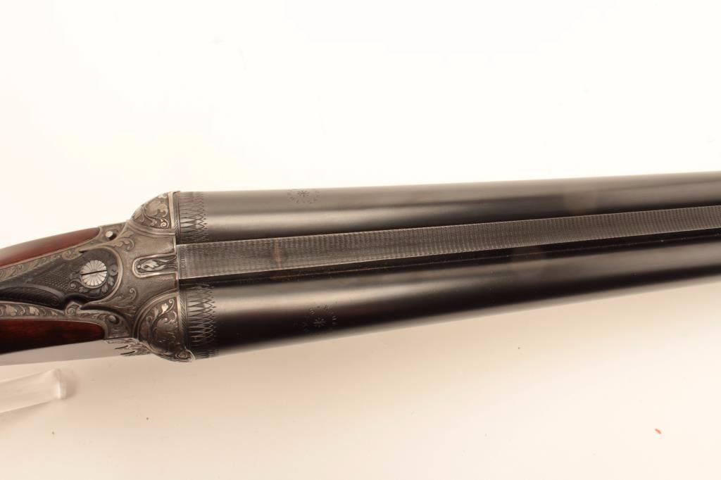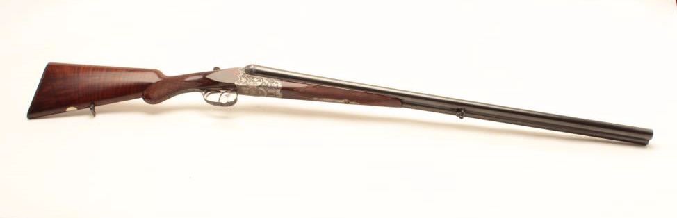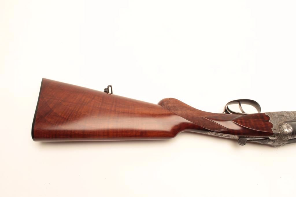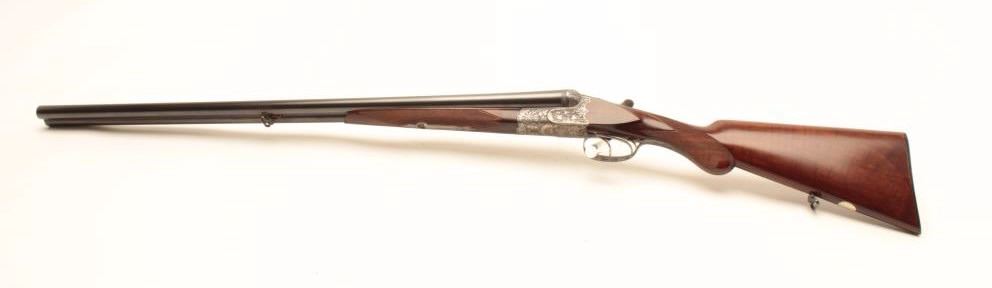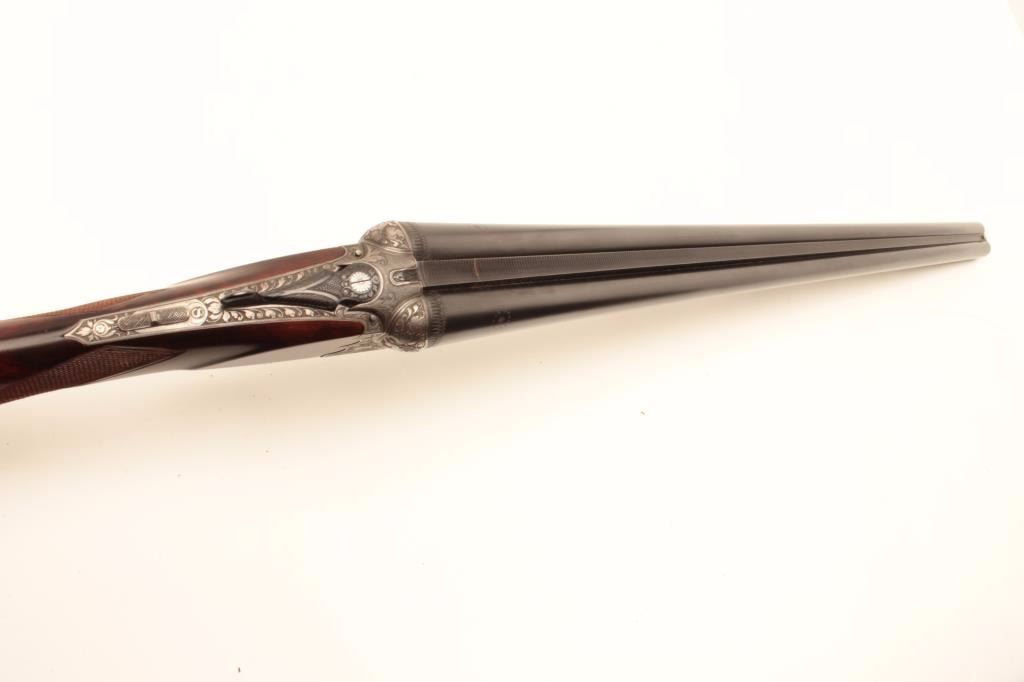 Lot 134 Abesser & Merkel SxS hammerless engraved shotgun, 12 gauge, 12 gauge, 30” barrels, blued finish to