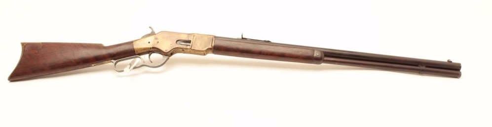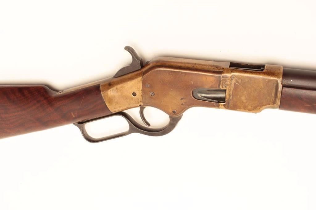 Lot 138 Winchester Model 1866 lever action rifle, .44 caliber, 24” round barrel, brass frame, wood stocks,