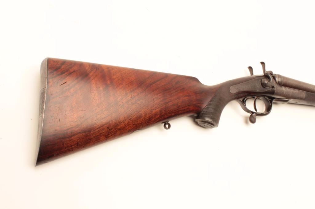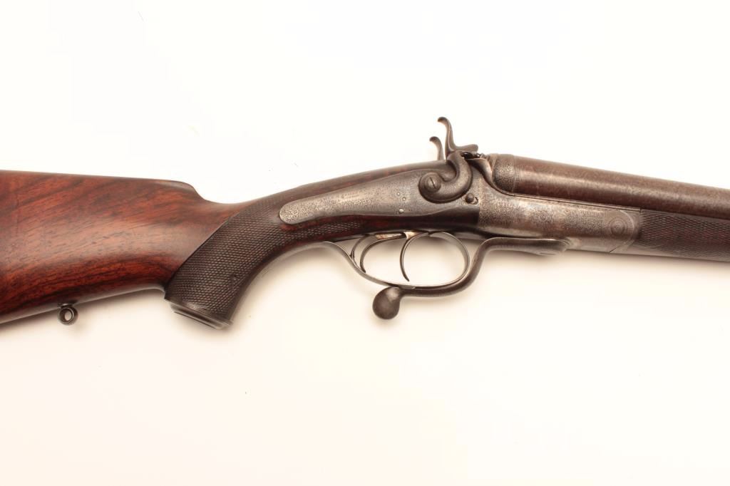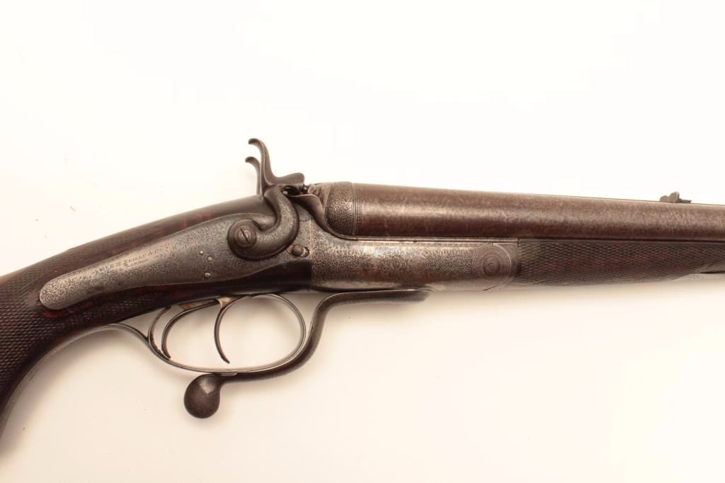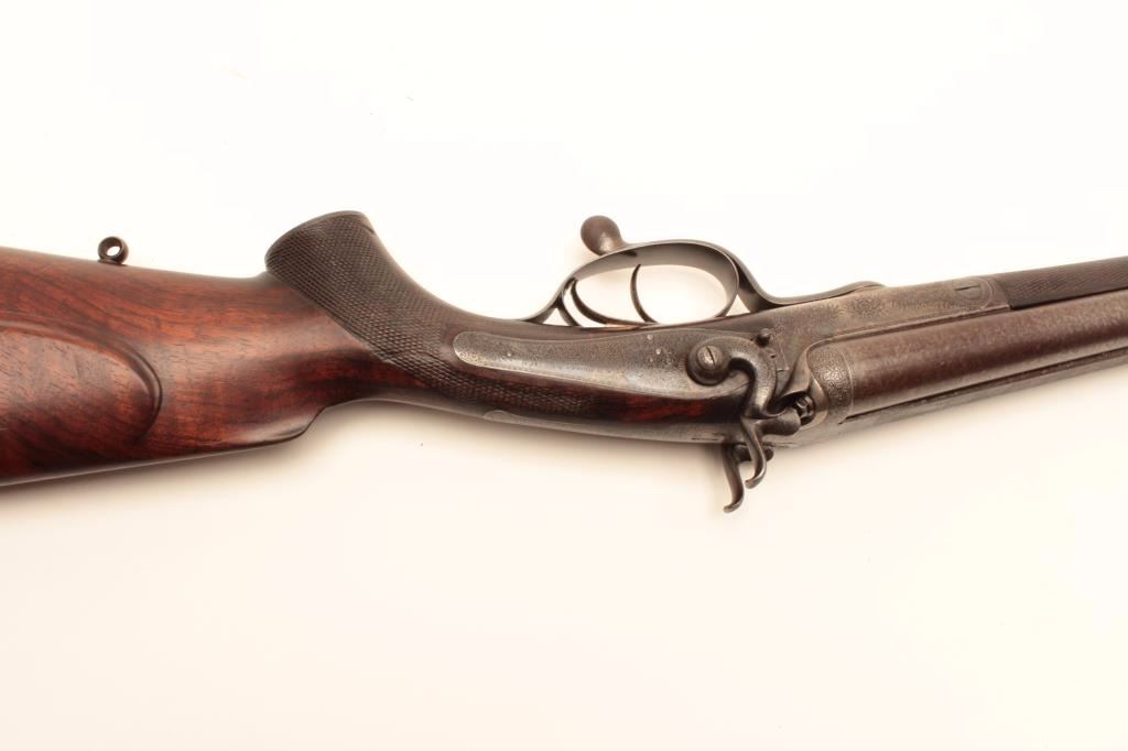 Lot 150b SxS black powder big game rifle by E.M. Reilly of London in .500 calibre with 28” Damascus twist b