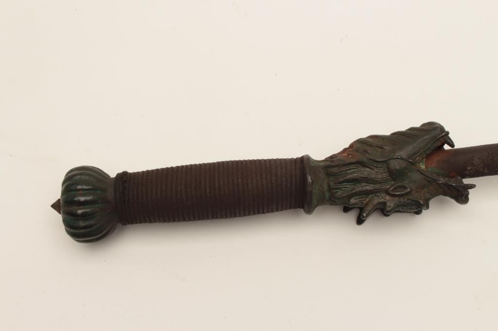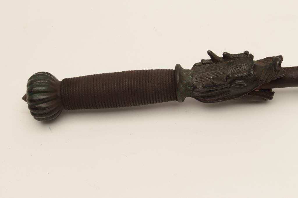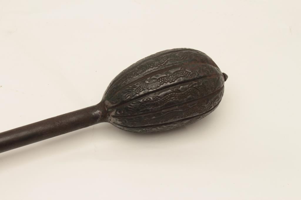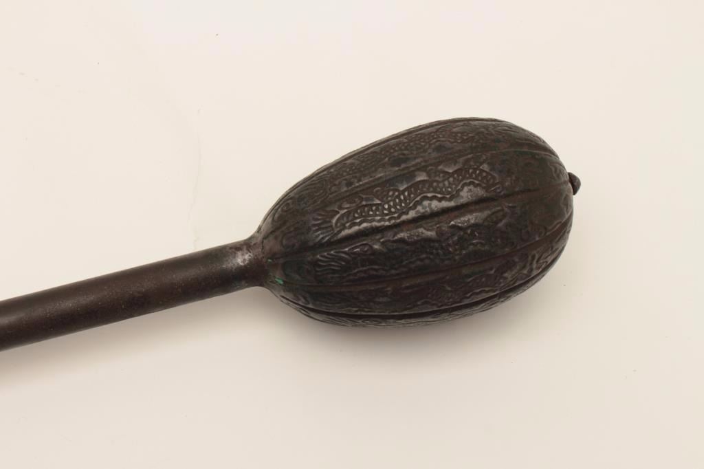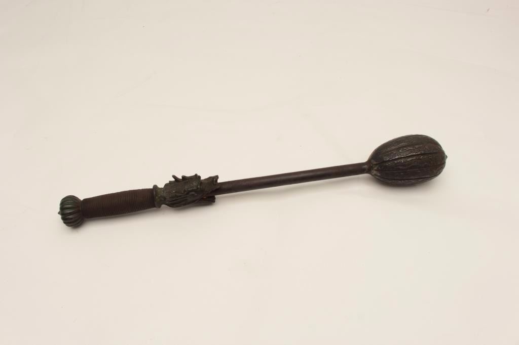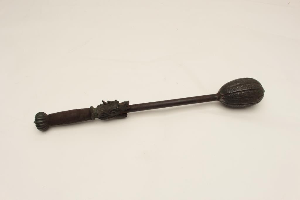 Lot 174 Very rare Chinese Imperial mace decorated with 12 dragons and traces of green enamel on mounts. Ol