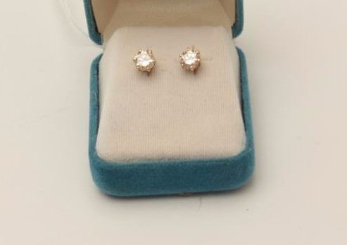 Lot 182 One pair of diamond stud in 14k yellow gold, diamonds weighing approx 1.5ct total wt. Champagne co
