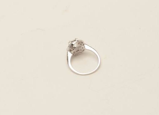 Lot 184 One 14k white gold halo style ring set with a diamond approx. 1.25ct color 1 VS2 and 0.30ct on s