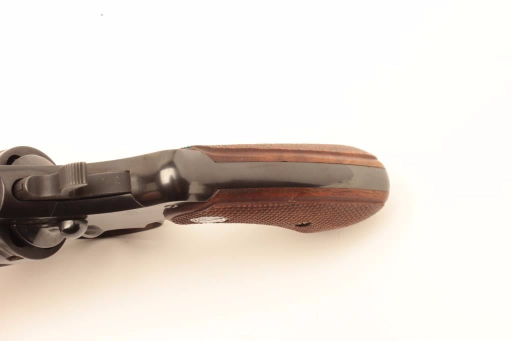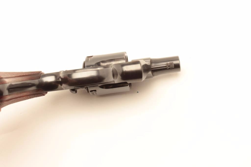Colt Official Police Model revolver, .38 Special caliber, Serial #849217. The pistol is in fine overall condition with a 2” barrel. The pistol retains nearly all of the original blue finish with light wear at themuzzle and a faint drag line on the cylinder. The checkered medallion grips are in very good condition with primarily handling and storage marks. According to the serial number the pistol was manufactured in 1956.The bore is very good, the action is crisp and the markings are sharp. A desirable Colt from the Gil Newton Collection. Est.: $800-$1,600. (C+R).