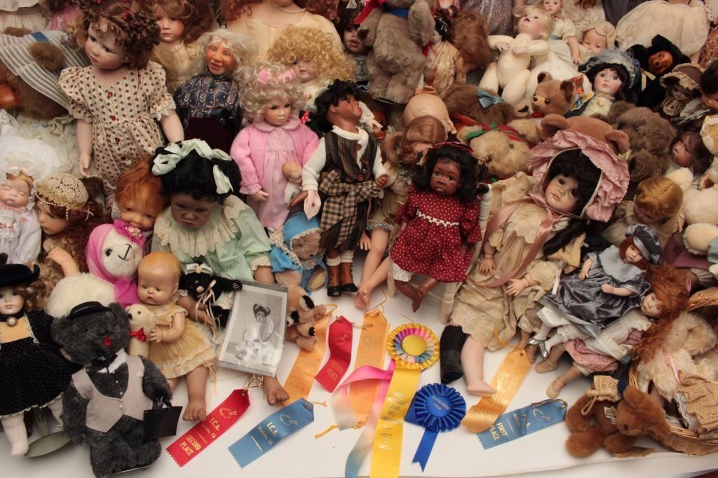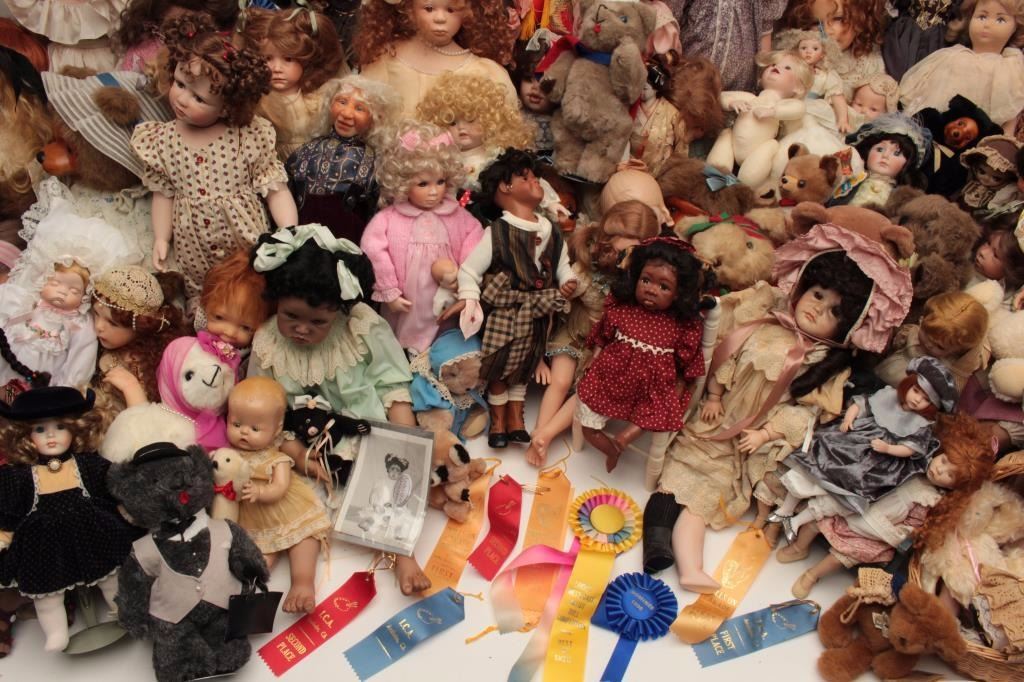 Large lot of antique and vintage dolls and Teddy bears collected and made by Gail Novello; her lifetime collection with many award ribbons ca. 1960’s; a bonanza; various ages and conditions; no reserve and estateconsigned; never picked and sold as one lot only. Est.: $500-$5,000.