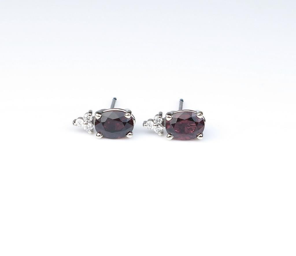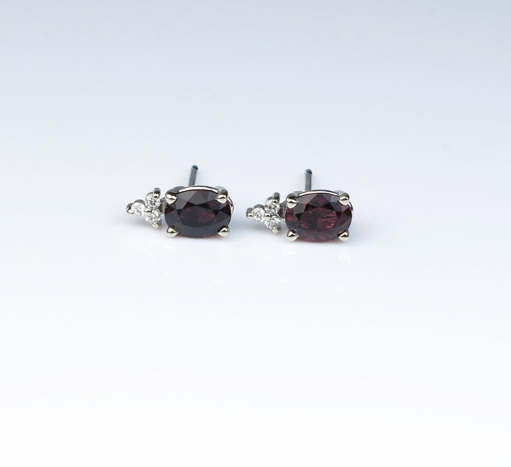 High quality ladies earrings featuring two Burmese Rubies weighing approx. 1.70 carats and six accents diamonds set in 14 karat white gold settings. Retail $2,000-$3,000 Estimates $1,000-$2,000