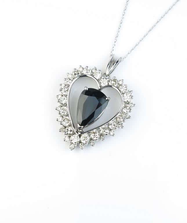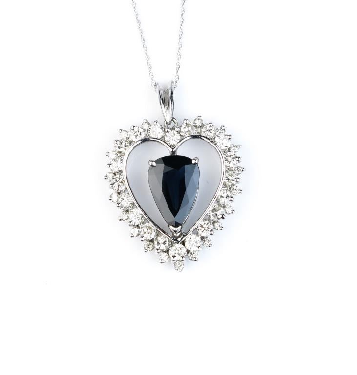 Lot 222 Exquisite heart design necklace featuring a large blue Sapphire weighing approx. 5.00-6.00 carats