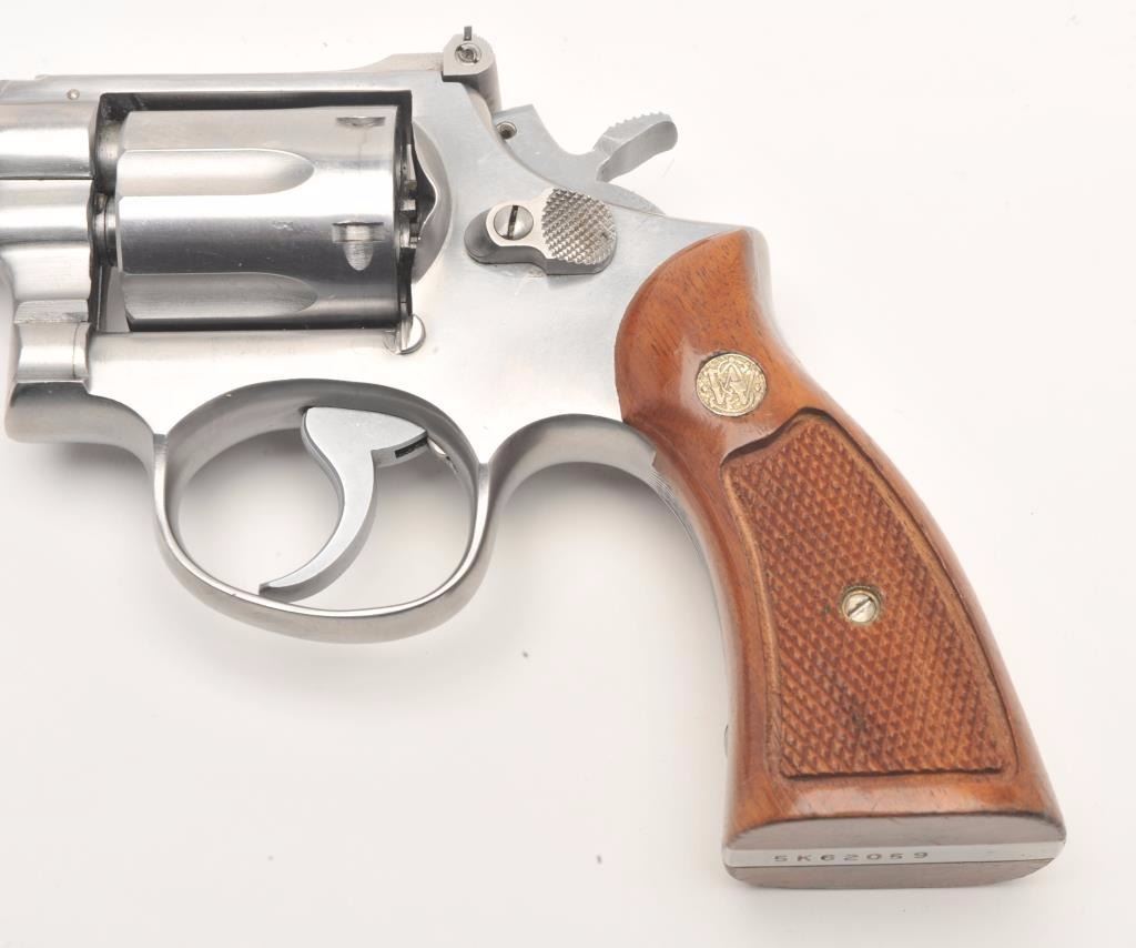 Lot 231 Smith & Wesson Model 67 DA revolver, .38 S&W Special caliber, 4” barrel, stainless, checkered wood