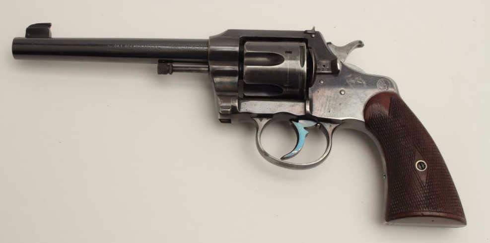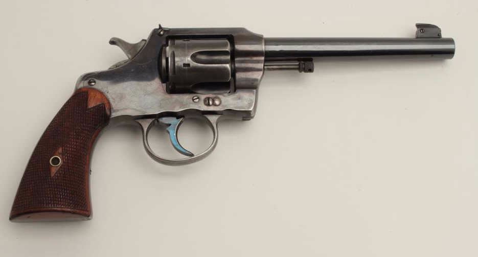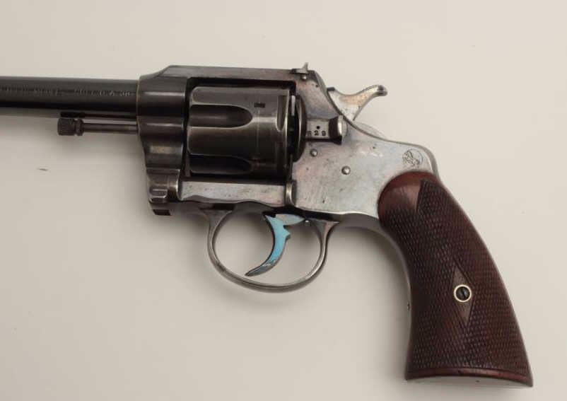 Lot 258 Colt Officer’s Model flat top target DA revolver, .38 caliber, 6” barrel, blued finish, checkered