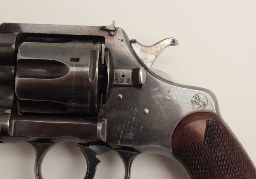 Colt Officer’s Model flat top target DA revolver, .38 caliber, 6” barrel, blued finish, checkered wood grips, S/N 261378, in overall fine condition displaying the majority of its original finish, crispaction, sharp markings, fine grips and very good + bore. (C&R/PPT). Est.: $600-$1,200.