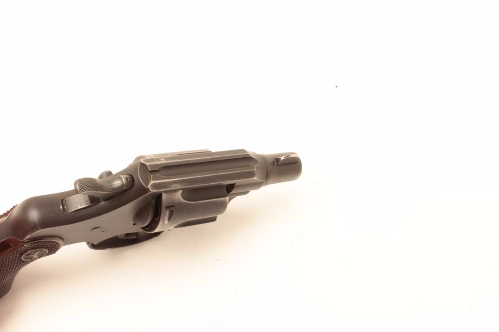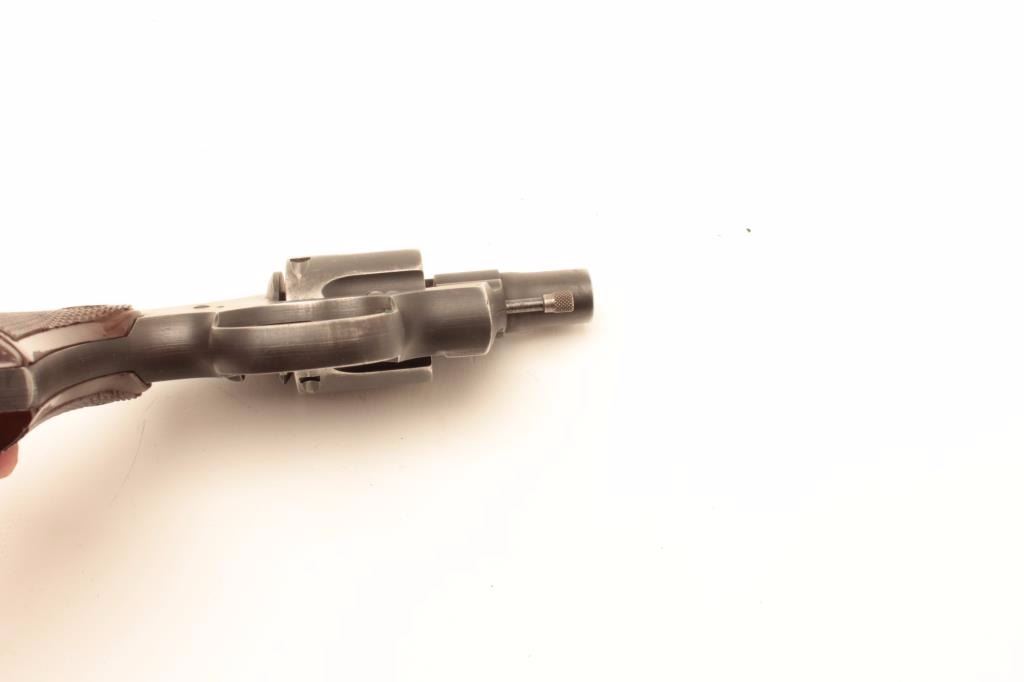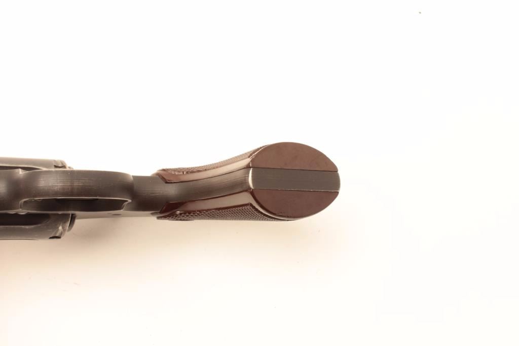 Colt Commando revolver, .38 Special caliber, Serial #43351. The pistol is in very good overall condition with a 2” barrel. The pistol retains the majority of its military finish with holster wear at the muzzle andhigh point edge wear. The checkered plastic Colt grips are in very good condition with only light storage and handling marks. The bore is good, the action crisp and markings are sharp. A nice Colt from the Gil Newtoncollection. Est.: $400-$800. (C+R).