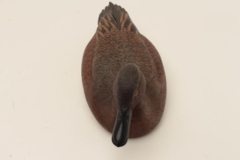 Lot 300 Beautiful cinnamon teal duck decoy, carved and signed by Robert L. Waterman; finely accomplished;