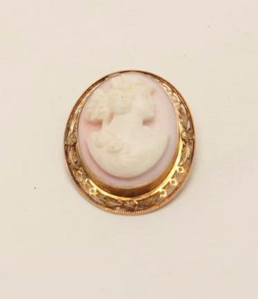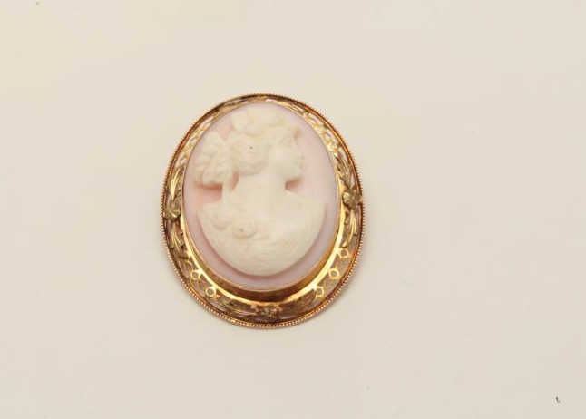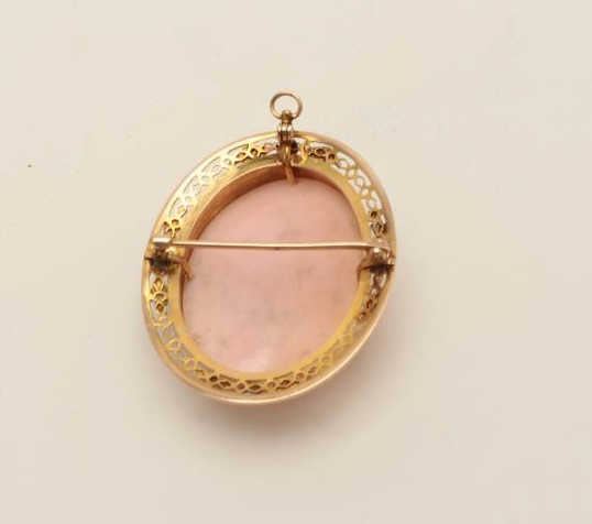 Lot 316 One beautifully carved white corral cameo set in a 10k yellow gold frame as a brooch cum pendant.