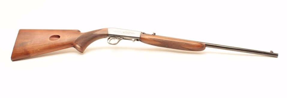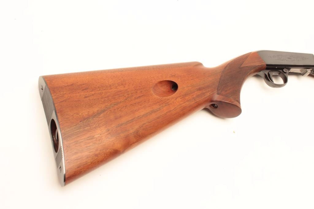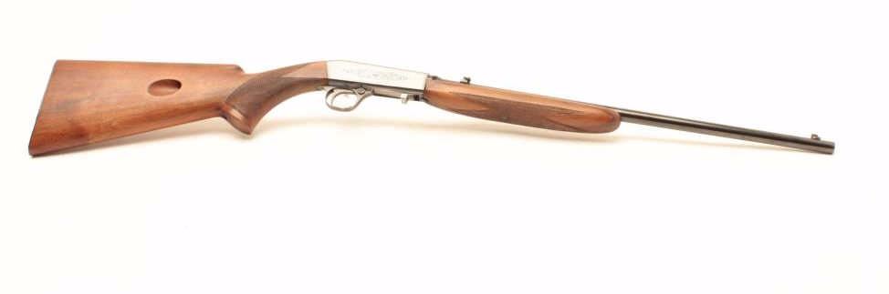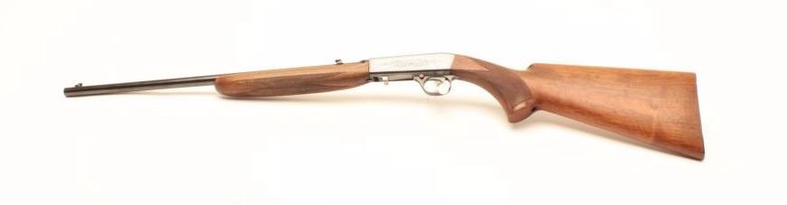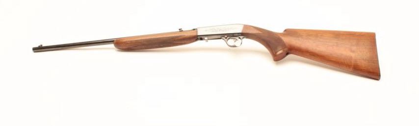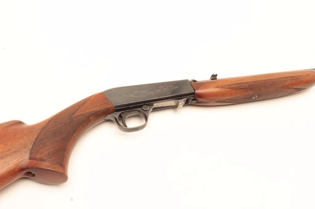 Belgian-made Browning takedown semi-automatic rifle, .22LR caliber, 19” barrel, blued finish, checkered wood stocks, S/N 1T3430, in overall fine condition showing the majority of its original finish, fine bore, action,markings and wood. (Modern/No PPT). Est.: $300-$600.