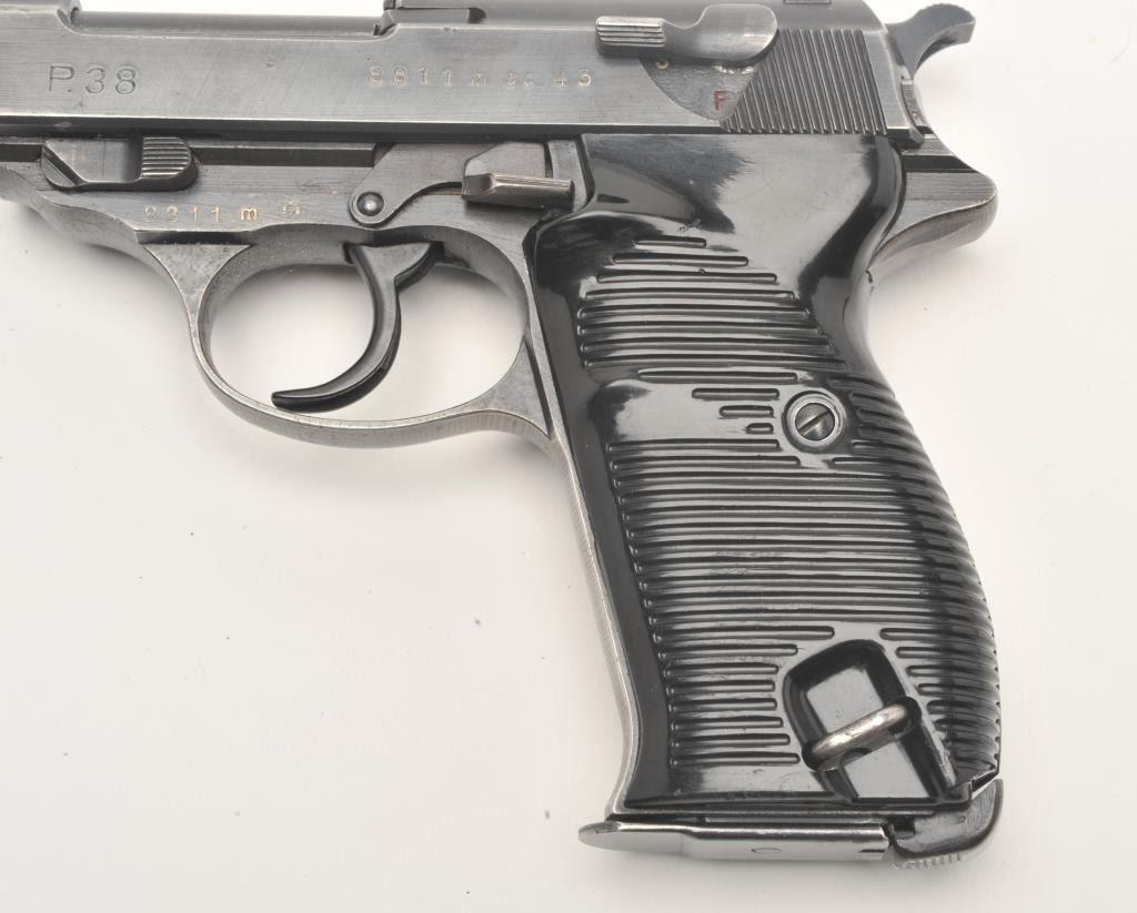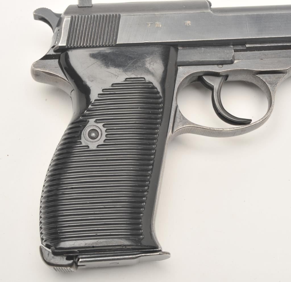 Lot 350 German P-38 semi-automatic pistol, ac43-marked, 9mm caliber, 5” barrel, military blued finish, bla