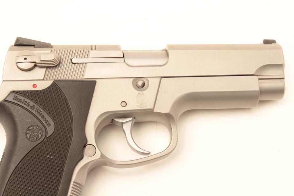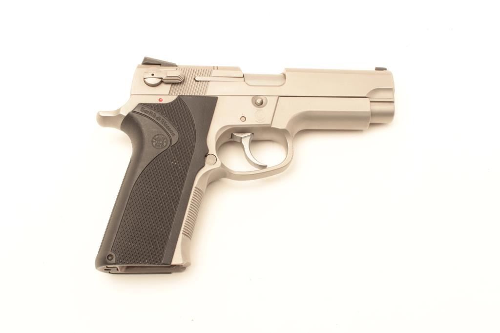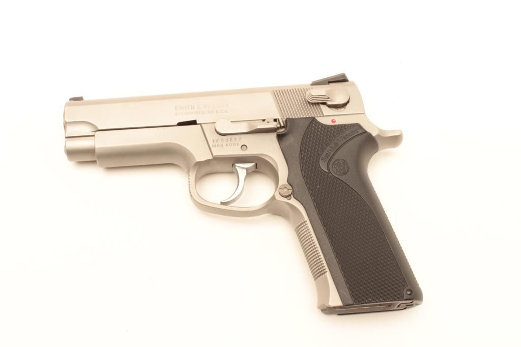 Lot 354 Smith & Wesson Model 4006 DA semi-automatic pistol, .40 S&W caliber, 4” barrel, stainless, checker