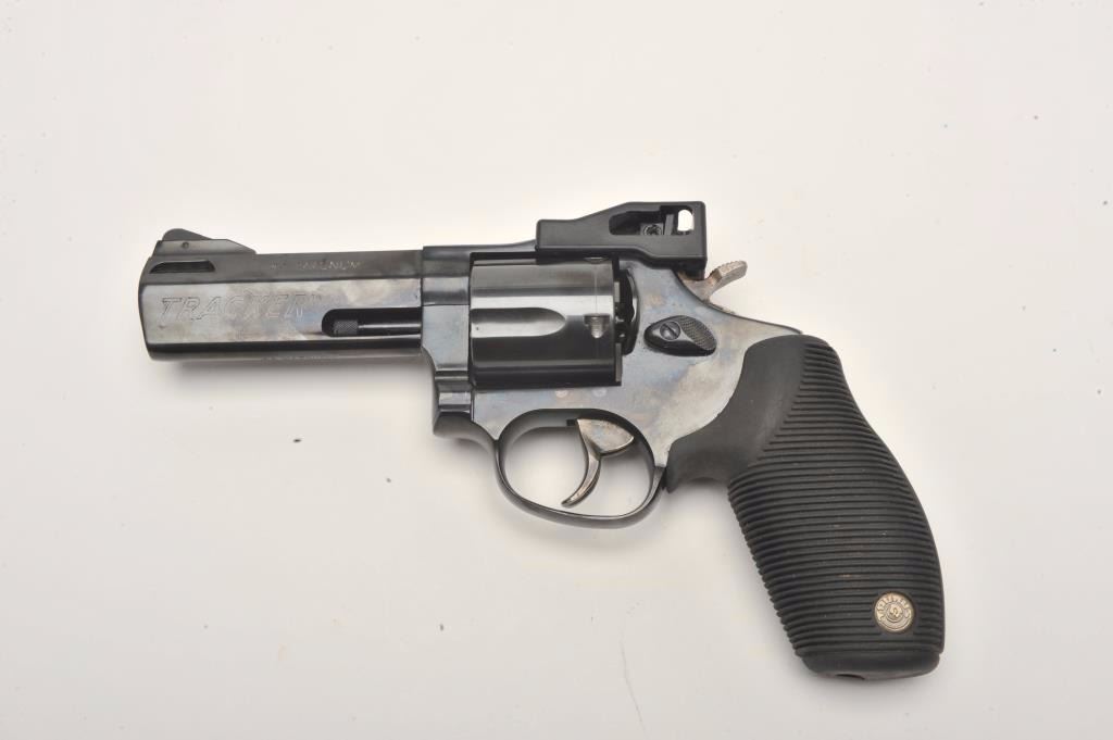 Lot 374 Taurus Tracker Model DA revolver, .44 Magnum caliber, 4” ported barrel, blued finish, hard rubber