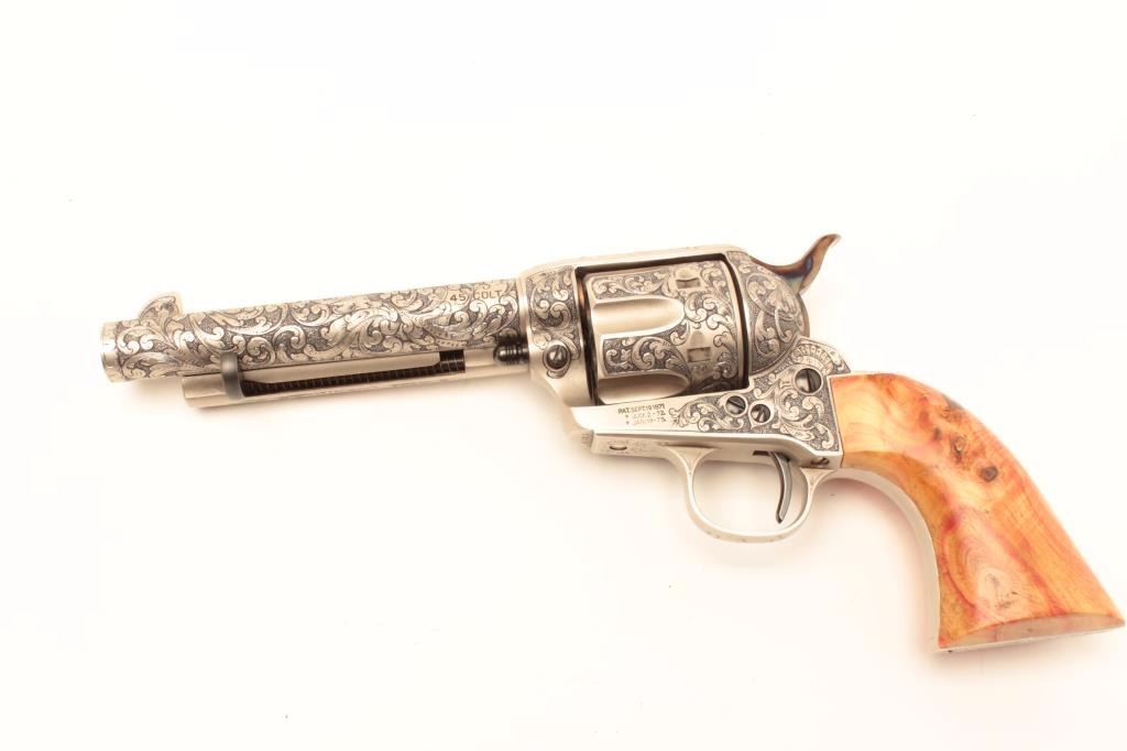Lot 378 U.S. Firearms Mfg. Co. copy of a Colt SAA revolver, expertly and extensively engraved by Aarron Pu
