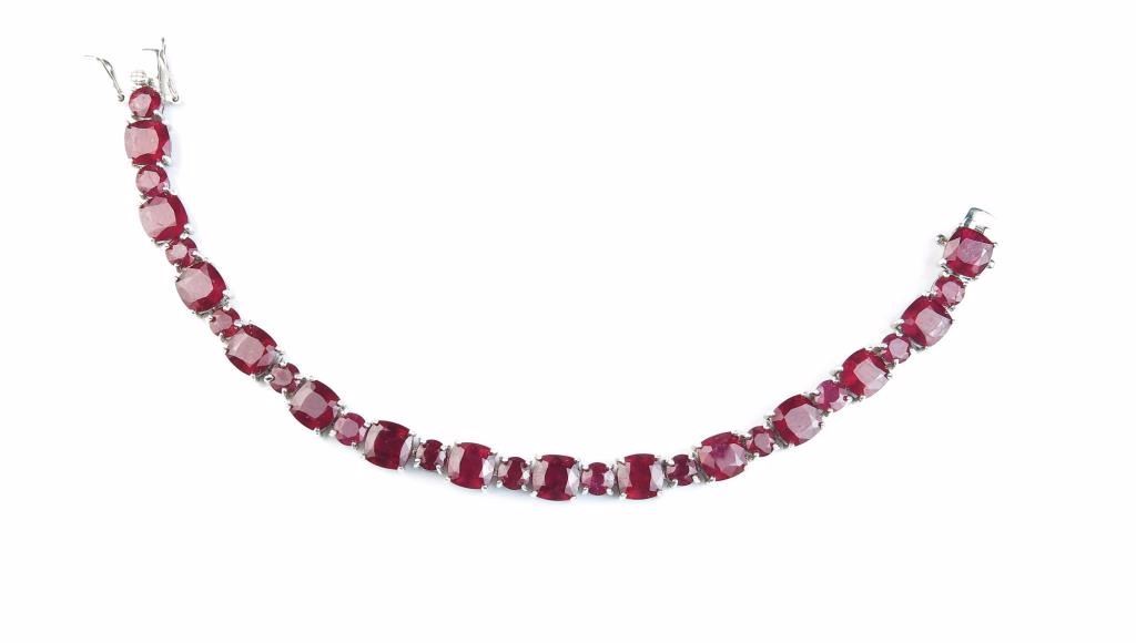 Lot 403 Nice ladies bracelet set with 28 intense red Rubies weighing approx. 15.00 carats set in sterling